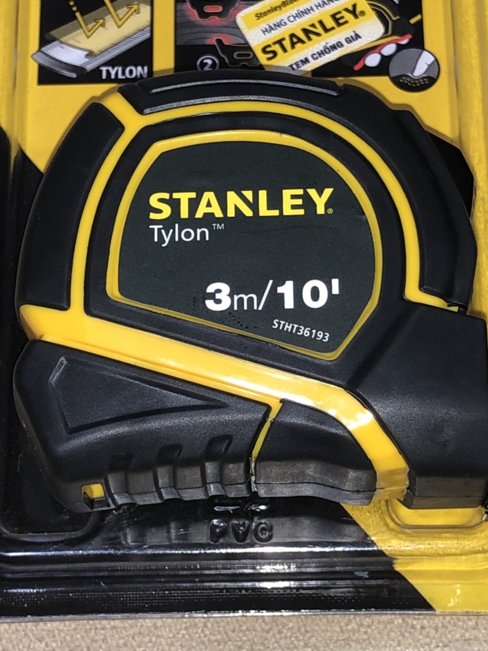 Thước cuộn thép TYLON hãng STANLEY Mỹ cao cấp , thước kéo nền vàng lưỡi phủ NYLON rõ nét
