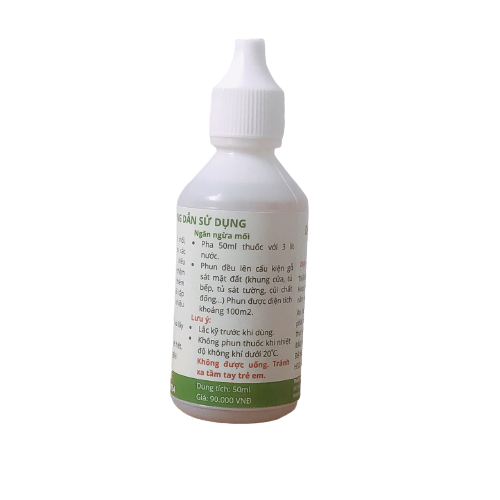 - Phân loại: Có mùi - Thành phần: Permethrin 55% W/v, Piperronyl 5% W/V - Dạng lỏng - Đóng chai: 200ml - Cách pha: 10ml/1 lít nước - Diệt trừ: Muỗi, kiến, gián *) Hướng