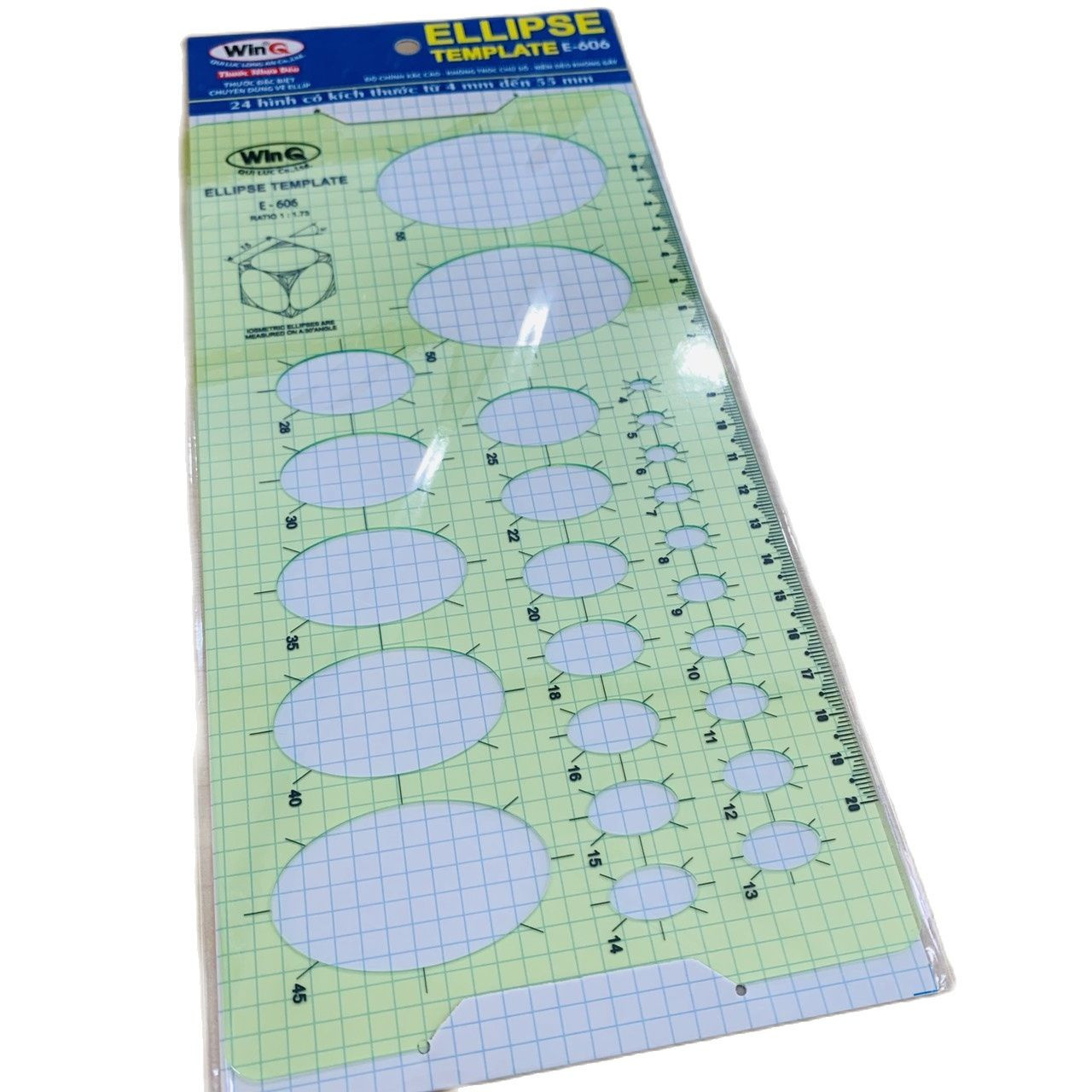 Thước vẽ Ellipse Template - WinQ E606 Thước Elip làm bằng nhựa dẻo chất lượng cao, độ đàn hồi cao, Thước Elip có vạch kẻ chia độ và chia kích thước chính xác. Thước Elip
