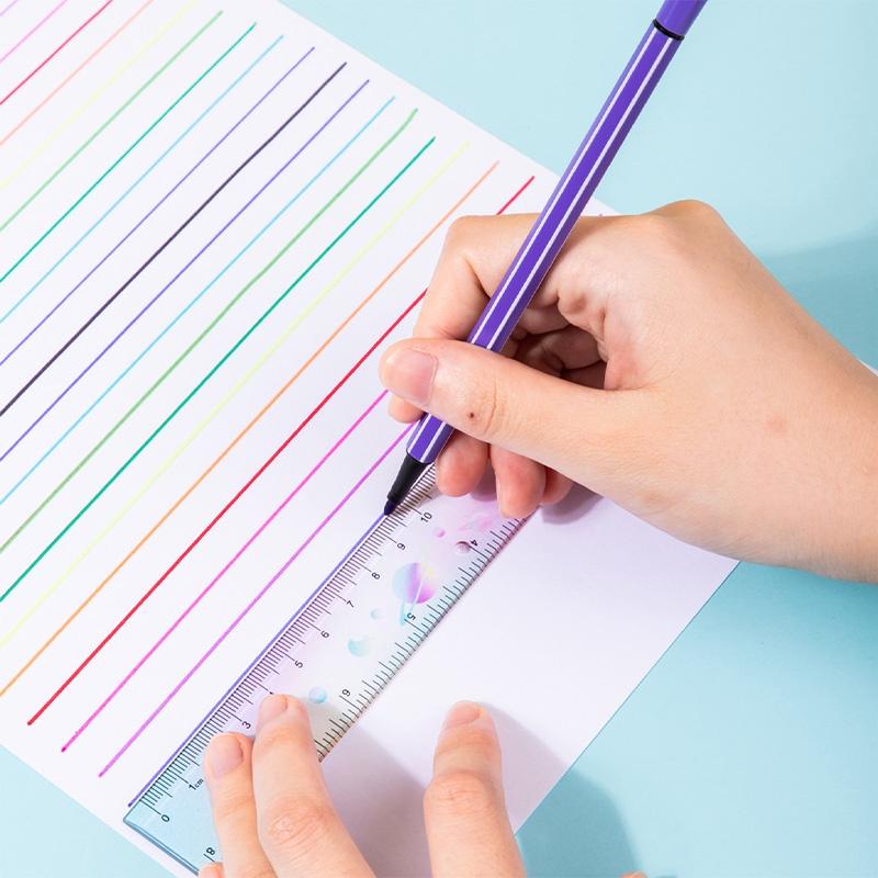 Thước thẳng có vạch kẻ chia kích thước chính xác, không bị tróc các chữ số. Thích hợp cho mọi đối tượng, cho nhiều mục đích sử dụng khác nhau. Thước trong suốt, mềm dẻo,