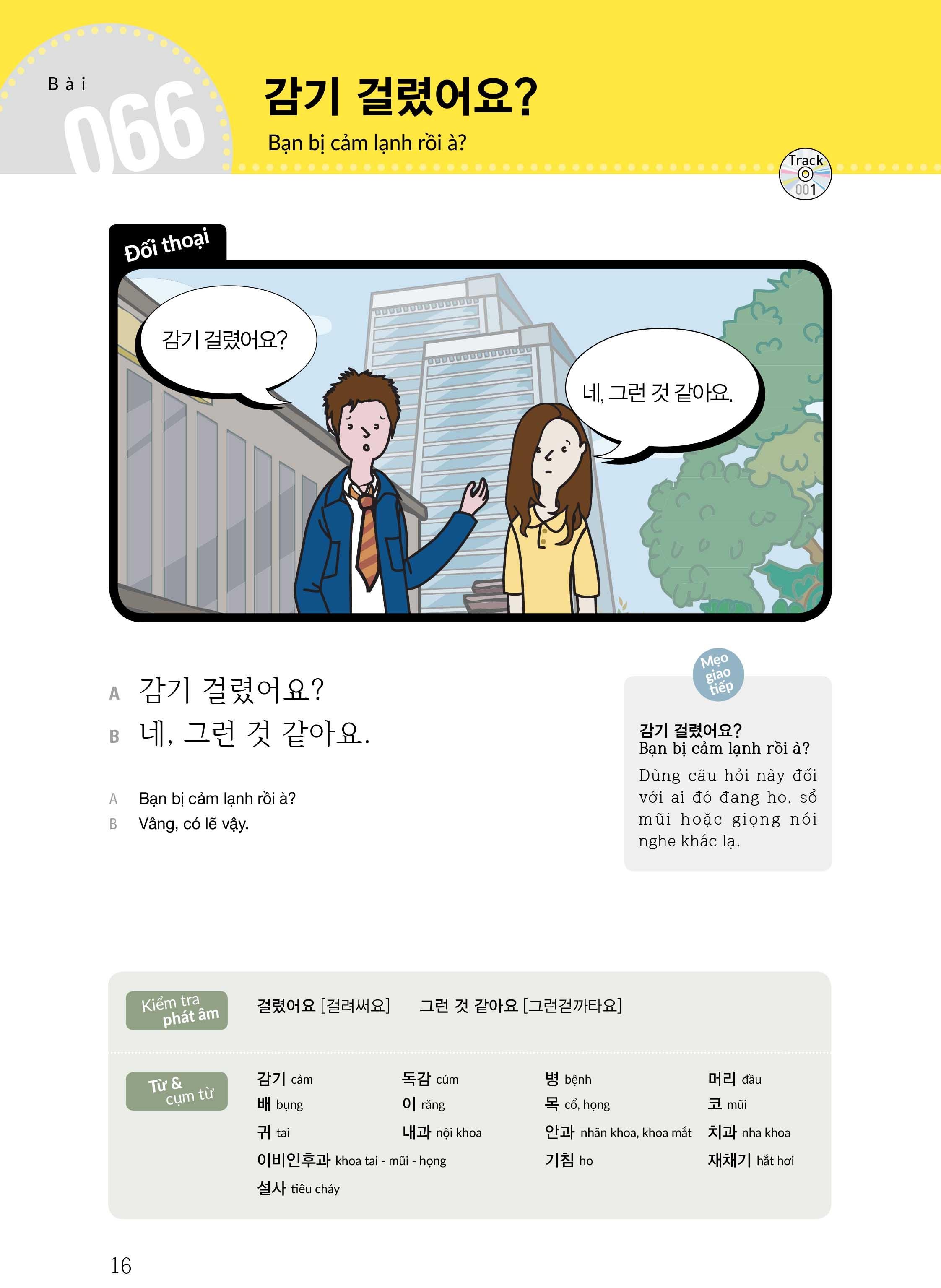 Mỗi bài học được mở đầu bằng phần Đối thoại, nơi bạn tìm thấy các mẩu nói chuyện căn bản trong đời sống thường ngày của người Hàn Quốc, như "Ngày mai gặp nhé", "Bạn ăn trưa chưa" hay "Đừng quá vội" Bên dưới mẩu đối thoại là đề mục "Kiểm tra phát âm", giúp bạn nắm được những điểm thường hay sai khi phát âm. Kế tiếp là các phần Từ & cụm từ, Chủ điểm ngữ pháp, Luyện tập mẫu câu bổ sung và Tìm hiểu về Hàn Quốc, hỗ trợ bạn học và thực hành tiếng Hàn thật toàn diện. Mong rằng bộ sách sẽ giúp bạn thật sự yên tâm và có thêm cảm hứng trong quá trình học tiếng Hàn.