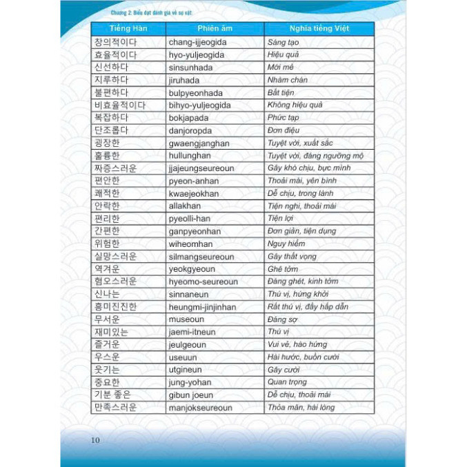 Tiếng Hàn Tổng Hợp Dành Cho Người Việt Nam - Sơ Cấp 1 Trong những năm gần đây, nhu cầu học tiếng Hàn và tìm hiểu về văn hóa Hàn Quốc đang có xu hướng tăng lên. Người học tiếng Hàn rất mong muốn có được một bộ giáo trình chuẩn, được biên soạn một cách tỉ mỉ và hữu ích nhất. Giáo trình tiếng Hàn tổng hợp lần đầu tiên được trao bản quyền chính thức tại Việt Nam Hiểu được điều đó, ngày 4-7, Đại diện chính phủ Hàn Quốc, ngài Woo Hyeong Min – Trưởng đại diện Văn phòng Quỹ giao lưu Quốc tế HQ tại Việt Nam cùng GS.TS.NGƯT Mai Ngọc Chừ – Chủ tịch Hội Nghiên cứu khoa học về Hàn Quốc của Việt Nam (KRAV) đã trao quyết định cho phép Công ty Cổ phần sách MCBooks của Việt Nam được xuất bản cuốn sách này tại thị trường Việt Nam. Và đây chính là bộ giáo trình tiếng Hàn tổng hợp đầu tiên có bản quyền chính thức có mặt tại Việt Nam. Cũng theo ông Woo Hyeong Min, Thực tế đây là bộ giáo trình chính thống mà tất cả người học tiếng Hàn tại Việt Nam cần sử dụng. Tuy nhiên nhiều năm qua bộ sách đến tay người dùng đều là sách lậu nên chưa đạt được kết quả mà chính phủ Hàn muốn mang tới Việt Nam. Do đó Chính phủ Hàn Quốc đã quyết định tìm 1 đơn vị xuất bản uy tín của Việt Nam để giúp họ mang đến cho người học những cuốn sách tiếng Hàn chất lượng tốt với giá cả hợp lý. Bộ giáo trình được Hội nghiên cứu khoa học Hàn Quốc của Việt Nam biên soạn và hiệu đính. Bộ giáo trình sẽ giúp nâng cao hiệu quả trong việc sử dụng ngôn ngữ Hàn sau tiếng mẹ đẻ và tiếng Anh, là nền tảng giúp người lao động Việt Nam nhận được những vị trí làm việc cao trong doanh nghiệp Hàn Quốc. Đây cũng là cách để thúc đẩy quan hệ hợp tác về văn hoá và giáo dục giữa hai nước trong thời gian tới. Giới thiệu cuốn Giáo trình tiếng Hàn tổng hợp dành cho người Việt Nam – Sơ cấp 1 Giáo trình tiếng Hàn tổng hợp dành cho người Việt Nam – Sơ cấp 1 được biên soạn dành cho người Việt Nam muốn học tiếng Hàn ở trình độ sơ cấp. Sách được biên soạn nhằm hướng tới việc sử dụng được trong các tiết học tiếng Hàn tại giảng đường đại học nên mỗi bài học được chia thành nhiều phần như: Lý thuyết cơ bản gồm từ vựng và cấu trúc ngữ pháp; phần luyện tập theo 4 kỹ năng giao tiếp như: Nghe – Nói – Đọc – Viết, phần luyện phát âm, phần tìm hiểu văn hóa… Các chủ đề trong sách được sắp xếp một cách có hệ thống và liên quan chặt chẽ với nhau. Giáo trình tiếng Hàn tổng hợp được biên soạn kèm theo một cuốn sách bài tập hỗ trợ giúp người học ôn tập kỹ hơn và có thể luyện tập nâng cao trong những trường hợp cần thiết. Nội dung trong Giáo trình tiếng Hàn tổng hợp – Sơ cấp 1 2 cuốn sách trong bộ Sơ cấp được xây dựng với 30 bài khóa và bảng chữ cái. Trong đó quyển 1 gồm phần bảng chữ cái và 15 bài đầu. Học hết quyển 1, bạn sẽ học đến quyển sơ cấp 2 với 15 bài còn lại. Cấu trúc tổng thể của giáo trình được xây dựng theo các chủ đề; mỗi chủ đề được liên kết thống nhất với một hệ thống các từ vựng và cấu trúc ngữ pháp cơ bản, bài tập ứng dụng, kỹ năng và tìm hiểu văn hóa. Trong mỗi bài học, nội dung học được chia thành các phần như: luyện từ vựng, luyện ngữ pháp cơ bản, luyện tập kỹ năng nghe – nói – đọc – viết, luyện phát âm, tìm hiểu văn hóa của đất nước Hàn Quốc xinh đẹp. Và kết thúc mỗi bài đều có thêm bảng từ mới xuất hiện trong bài học. Phần cuối của sách, các tác giả đưa ra hệ thống từ mới được sắp xếp theo thứ tự của bảng chữ cái. Đây là những từ không xuất hiện trong phần ngữ pháp, từ vựng cơ bản; nhưng lại xuất hiện nhiều ở phần luyện tập của từng bài.