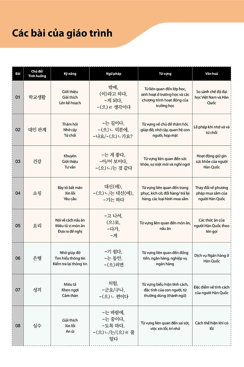 - Giáo trình giải quyết những khó khăn cho người học Tiếng Hàn