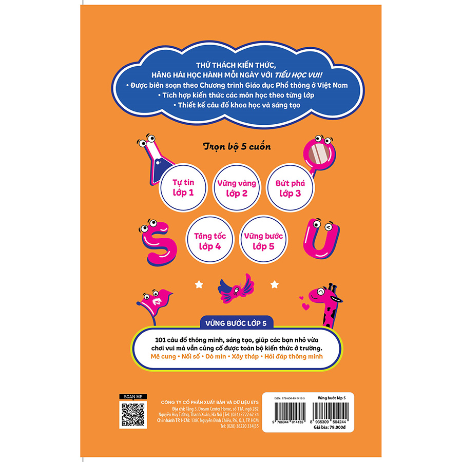 Được biên soạn dựa theo Chương trình Giáo dục Phổ thông dành cho học sinh tiểu học, bộ sách Tiểu học vui gồm 5 cuốn tương ứng từ lớp 1 đến lớp 5. 101 câu hỏi trong cuốn Tăng tốc lớp 5 tổng hợp kiến thức của nhiều môn học: