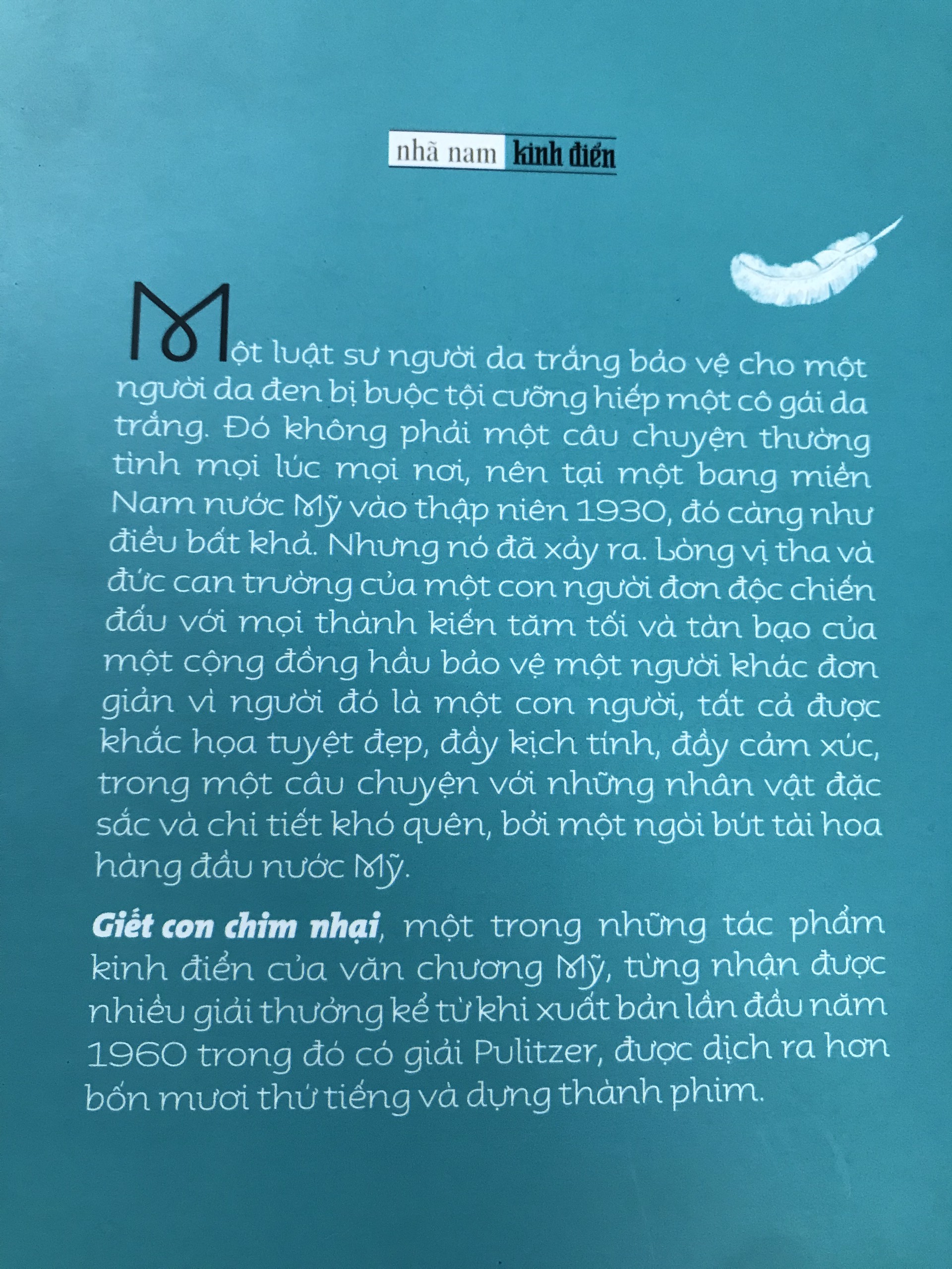 Gần 50 năm từ ngày đầu ra mắt, Giết con chim nhại, tác phẩm đầu tay và cũng là cuối cùng của nữ nhà văn Mỹ Harper Lee vẫn đầy sức hút với độc giả ở nhiều lứa tuổi. Thông điệp yêu thương trải khắp các chương sách là một trong những lý do khiến Giết con chim nhại giữ sức sống lâu bền của mình trong trái tim độc giả ở nhiều quốc gia, nhiều thế hệ. Những độc giả nhí tìm cho mình các trò nghịch ngợm và cách nhìn dí dỏm về thế giới xung quanh. Người lớn lại tìm ra điều thú vị sâu xa trong tình cha con nhà Atticus, và đặc biệt là tình người trong cuộc sống, như bé Scout quả quyết nói “em nghĩ chỉ có một hạng người. Đó là người”