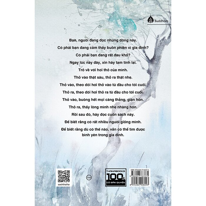 “Tìm bình yên trong gia đình” cuốn sách của Sư ông Làng Mai Thích Nhất Hạnh là tập hợp nhiều câu hỏi vấn đáp của quý Phật tử, mọi người ở khắp nơi gửi về cho Sư ông để giải đáp những vấn đề xoay quanh các mối quan hệ trong gia đình, giữa vợ với chồng, cha mẹ với con cái và cả cách vượt qua nỗi đau khi mất đi người thân…
