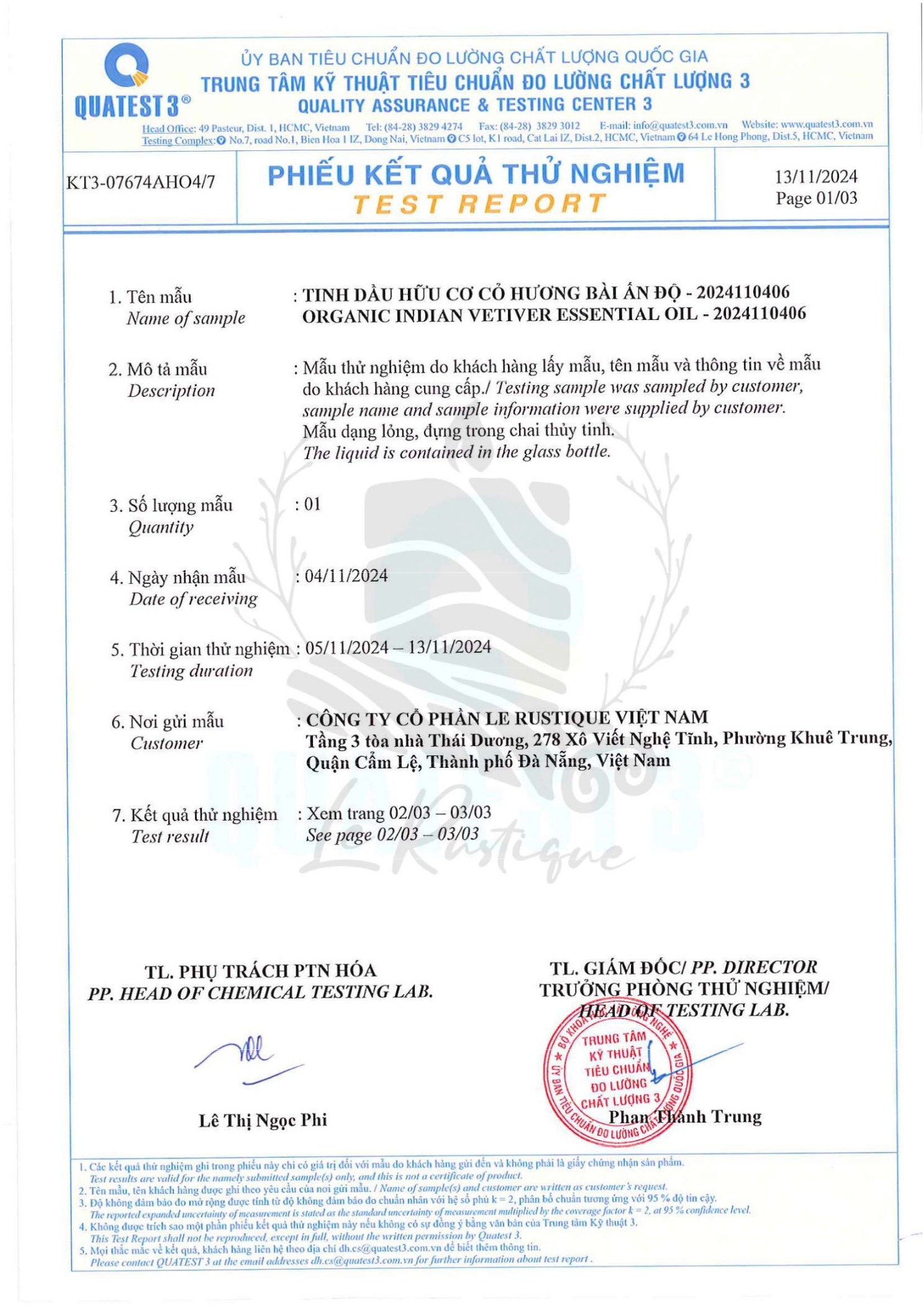 ► Sản phẩm: Tinh Dầu Cỏ Hương Bài (Ấn Độ) - 100% Nguyên Chất Hữu Cơ - Le Rustique - Tinh Dầu Bản Địa Ấn Độ
