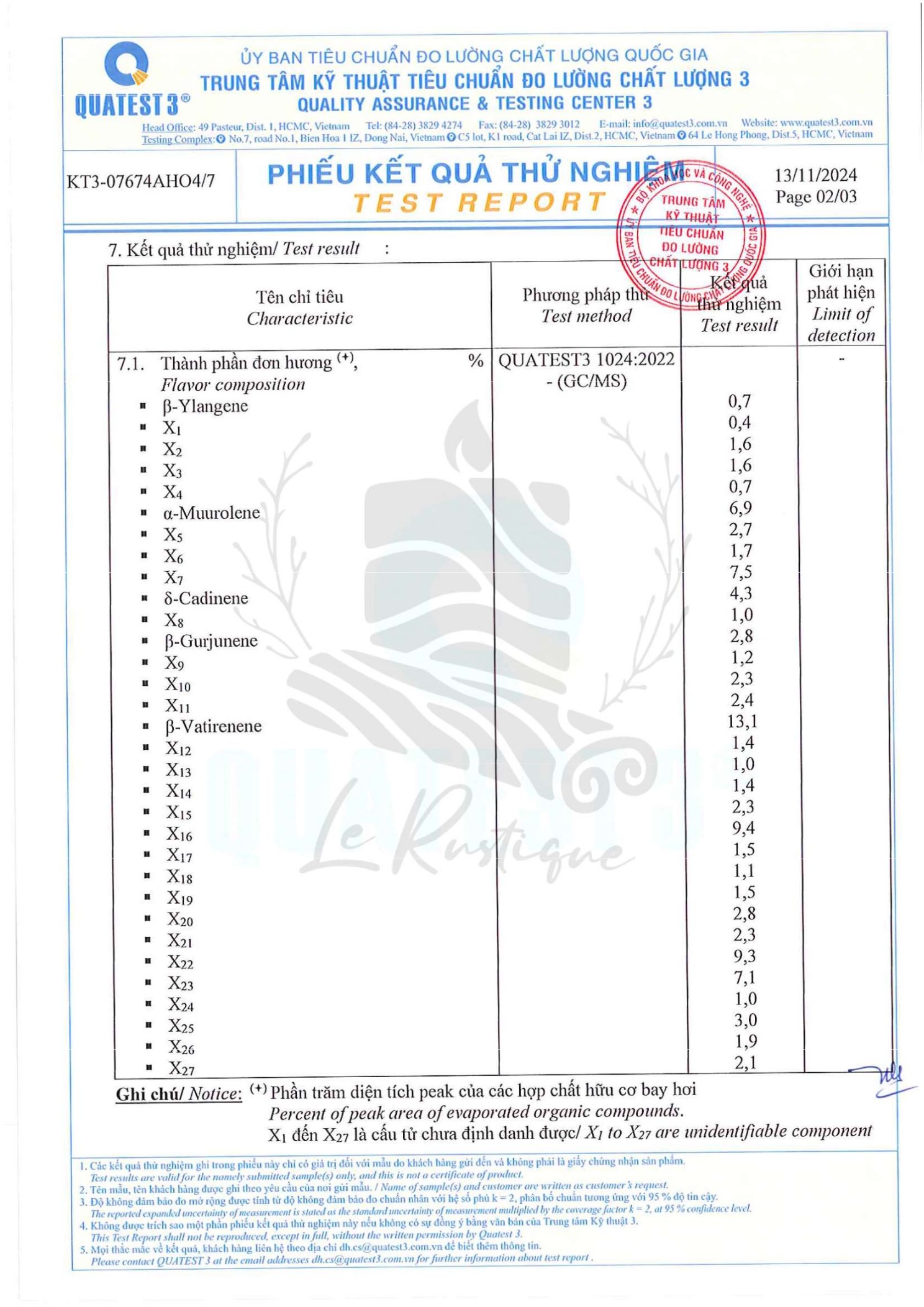 ► THÀNH PHẦN: 100% tinh dầu cỏ hương bài hữu cơ với các thành phần chính như: Khusimol (5-15%), β-Vetivenene (3-20%), Isovalencenol (5-14%), α-Vetivone (3-6%), β-Vetivone (0-5%), Isoeugenol (<1%). Quét mã QR để xem kết quả phân tích GC-MS với hàm lượng của các thành phần trong tinh dầu.