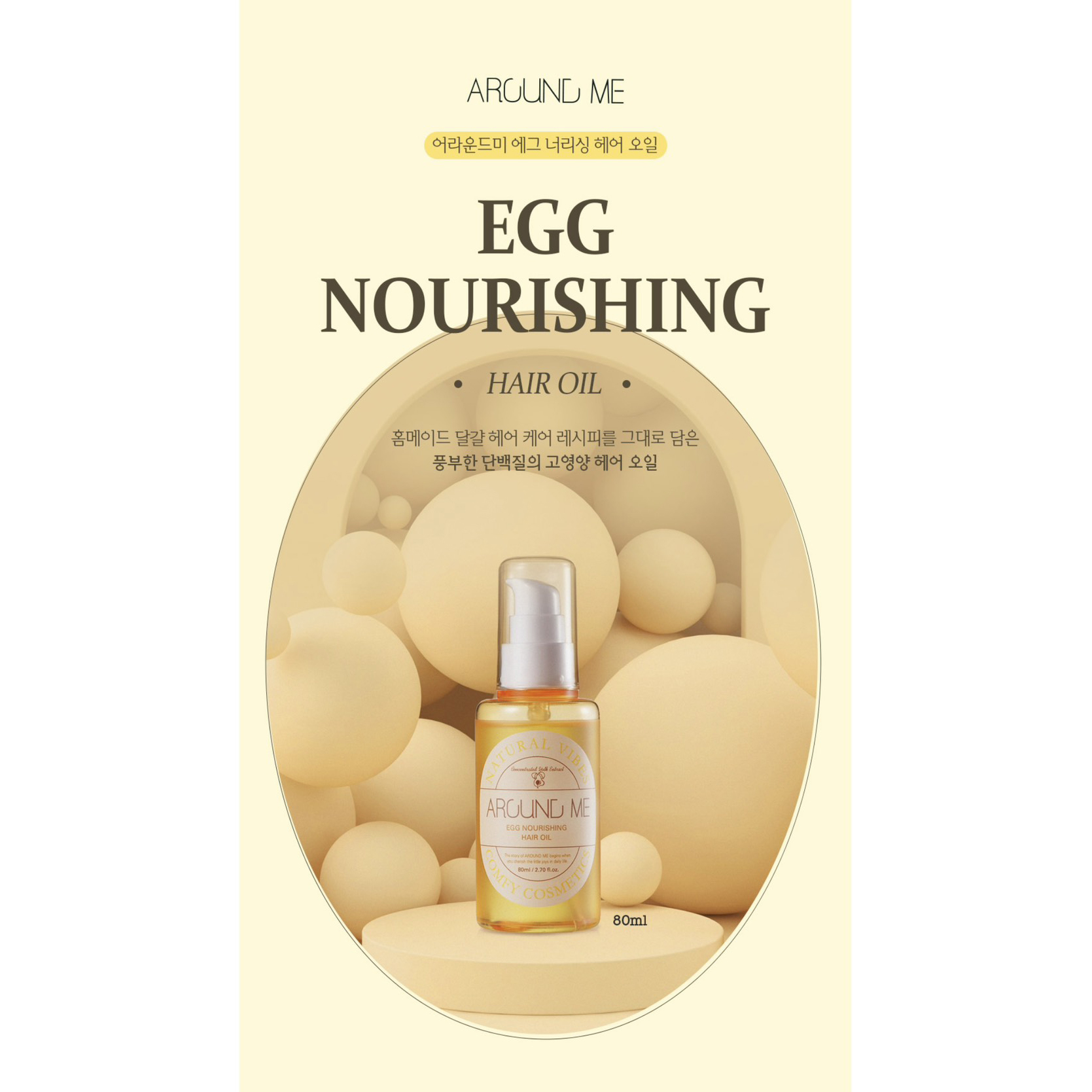Thông tin sản phẩm: Tinh dầu dưỡng tóc thơm, mềm mượt chiết xuất từ trứng Around Me Egg Nourishing Hair Oil 80ml