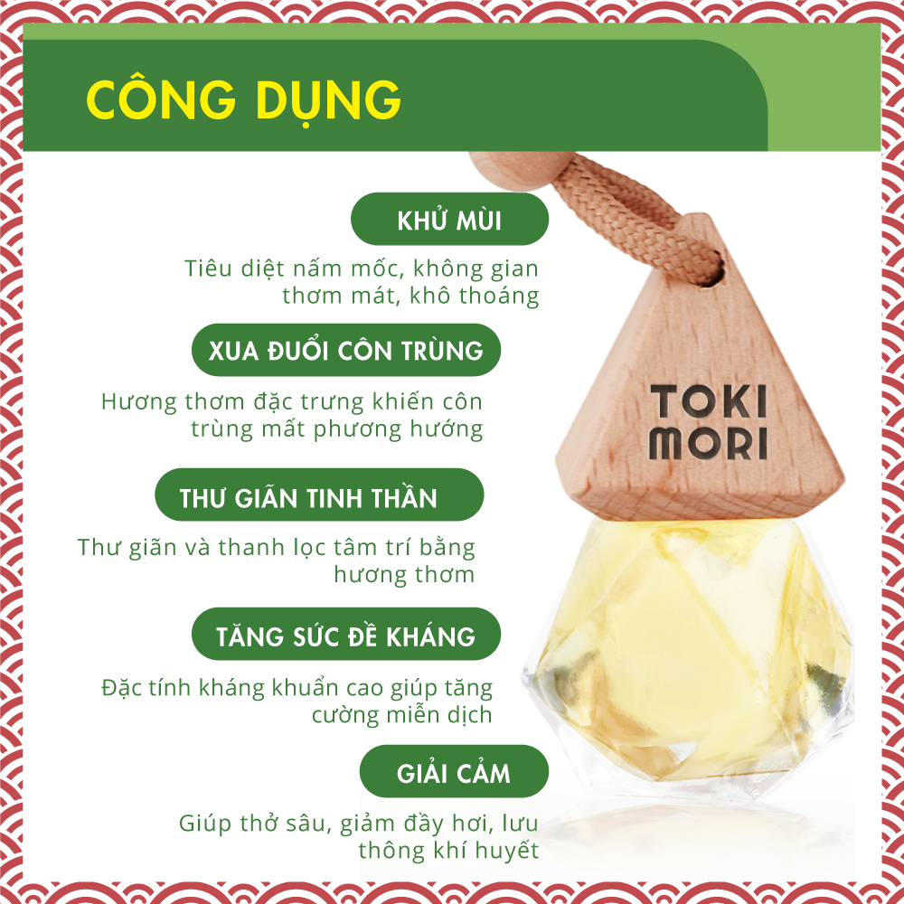 Tinh Dầu Sả Chanh Treo Xe TOKI MORI Xuất Khẩu Nhật Bản (10ml) Nguyên Chất Thiên Nhiên,An Toàn Cho Trẻ, Xông Phòng, Khử Mùi, Thơm Xe, Chống Ói, Kháng Khuẩn.