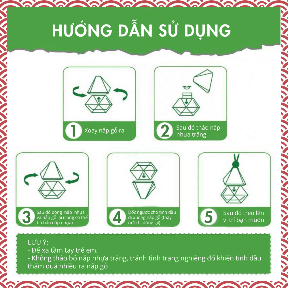 ► Khử mùi diệt khuẩn, làm thơm không gian: cho 3-5 giọt tinh dầu vào đèn xông giúp lan tỏa khắp gian phòng, làm sạch không khí. Có thể trộn các mùi với tỷ lệ 1:1:1 hoặc tỷ lệ khác tùy sở thích để có những trải nghiệm đặc biệt hơn.