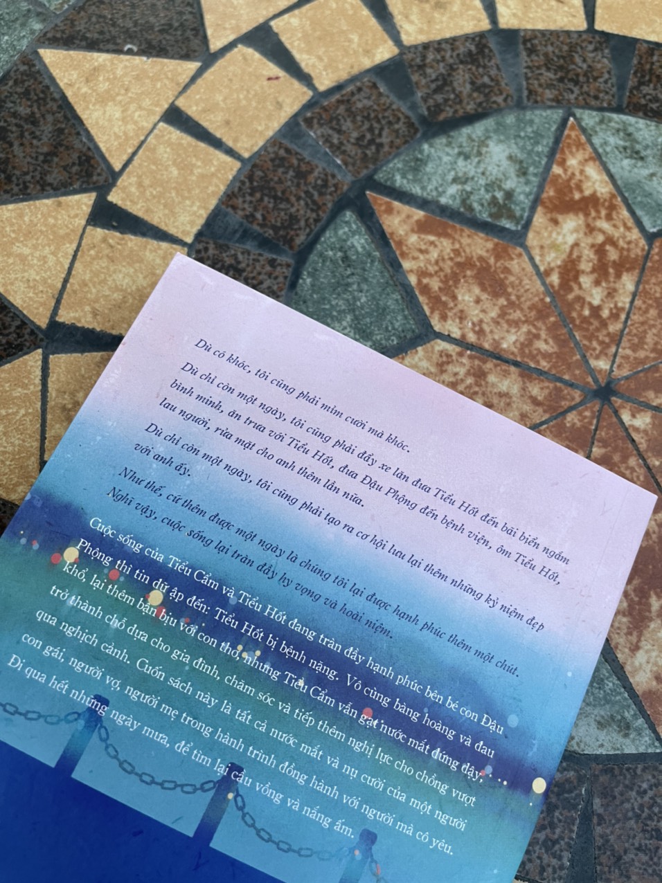 Cuộc sống của Tiểu Cẩm và Tiểu Hốt đang tràn đầy hạnh phúc bên bé con Đậu Phộng thì tin dữ ập đến: Tiểu Hốt bị bệnh nặng. Vô cùng bàng hoàng và đau khổ, lại thêm bận bịu với con nhỏ, nhưng Tiểu Cẩm vẫn gạt nước mắt đứng dậy, trở thành chỗ dựa cho gia đình, chăm sóc và tiếp thêm nghị lực cho chồng vượt qua nghịch cảnh. Cuốn sách này là tất cả nước mắt và nụ cười của một người con gái, người vợ, người mẹ trong hành trình đồng hành với người mà cô yêu. Đi qua hết những ngày mưa, để tìm lại cầu vồng và nắng ấm.