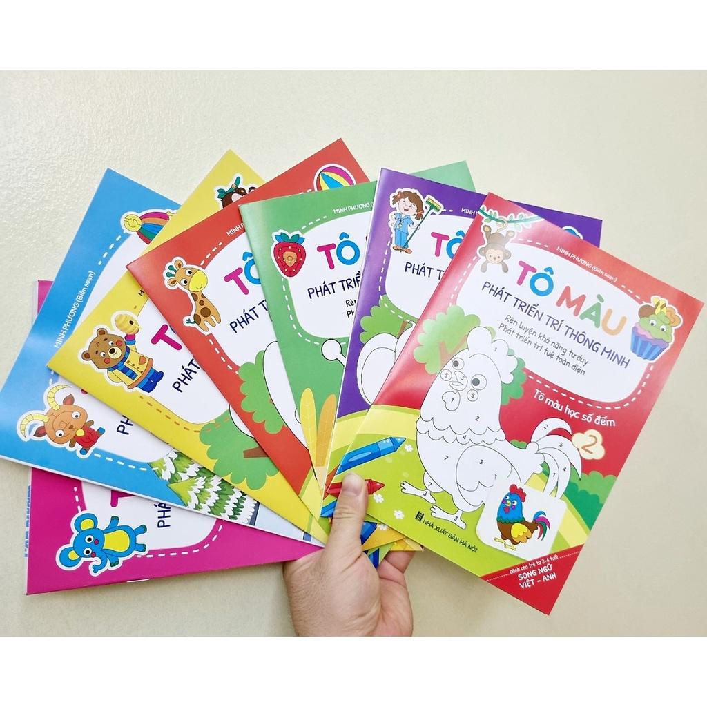 Bộ 8 cuốn Tô Màu Phát Triển Trí Thông Minh Dành Cho Bé 2-6 tuổi Song Ngữ Việt Anh Rèn Luyện Khả Năng Tư Duy Phát Triển Trí Tuệ Toàn Diện Bộ sách gồm: 1.