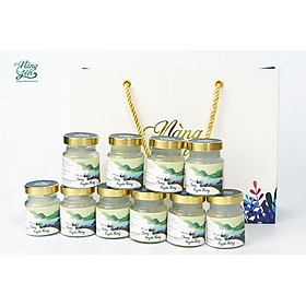 Hộp gỗ chữ nhật kích thước 31x22x8 (cm) Gồm 12 phần yến, mỗi phần 1,5 g + 12 gói đường phèn, mỗi gói 7 g Tặng kèm 12 hũ thủy tinh tiệt trùng dùng để