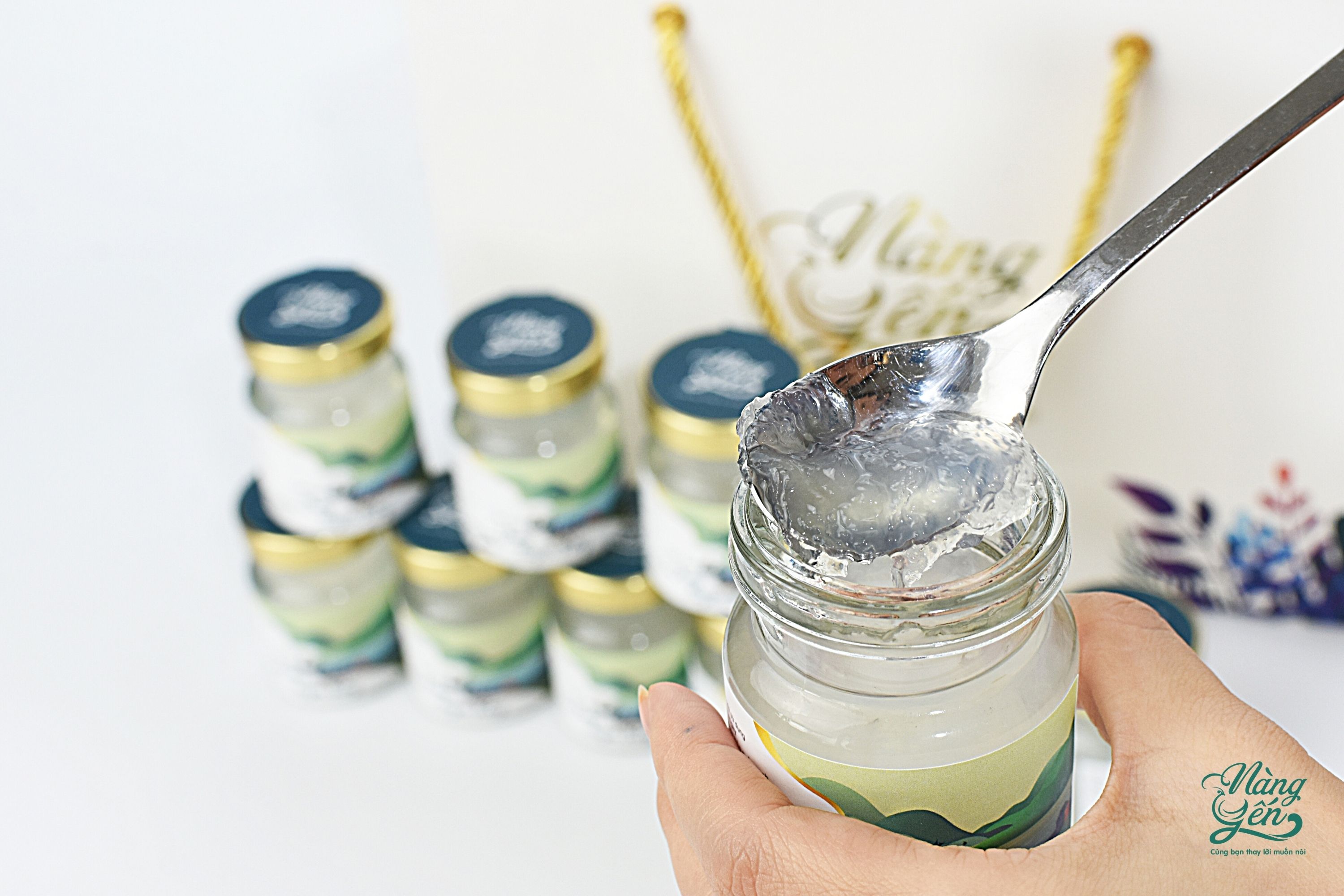 - Những người cần phục hồi sức khoẻ, bổ sung chất dinh dưỡng, tăng cường đề kháng, hỗ trợ hệ hô hấp, những người có nhu cầu duy trì làn da tươi sáng, giảm quá trình lão hoá. CHỨNG NHẬN CHẤT LƯỢNG HÀM LƯỢNG CHẤT TRONG SẢN PHẨM VÀ CHỈ TIÊU VI SINH AN TOÀN CHO SẢN PHẨM Sản phẩm được chứng nhận đảm bảo vệ sinh an toàn thực phẩm. Sản phẩm được chưng cất với quy trỉnh khép kín, An toàn - được test vi sinh định kỳ để đảm bảo an toàn cho người dùng. GIẤP PHÉP AN TOÀN THỰC PHẨM DO CÁC CƠ QUAN CHỨC NĂNG CẤP HÌNH THỨC BAO BÌ SẢN PHẨM 10 hũ yến 70ml được đựng vào túi giấy màu trắng có dán logo Nàng Yến