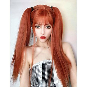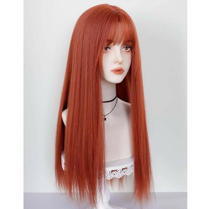 ✨tóc giả nữ màu đỏ cam - Tặng lưới chùm tóc