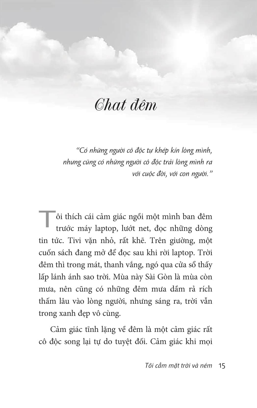 Tôi cầm mặt trời và ném không chỉ là một chữ ký thông thường, nó là thái độ sống của tác giả đối với cuộc đời sôi động này, là lời tổng kết có ý nghĩa nhất những việc chị đã làm trong đời.