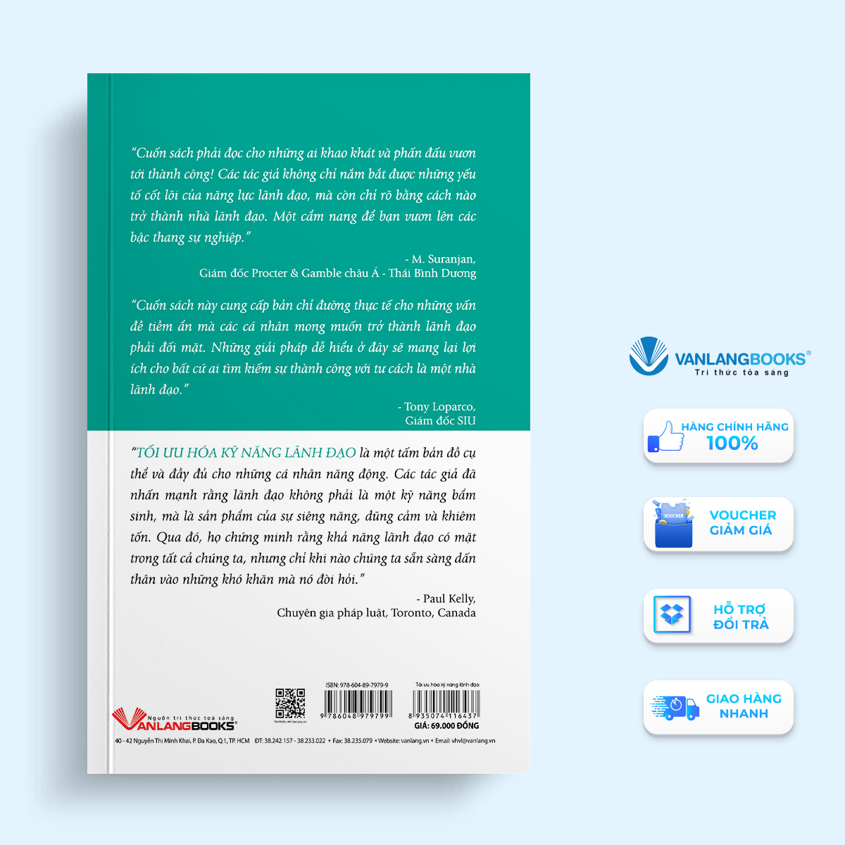“Tối ưu hóa kỹ năng lãnh đạo là một tấm bản đồ cụ thể và đầy đủ cho những cá nhân năng động. Các tác giả đã nhấn mạnh rằng lãnh đạo không phải là một kỹ năng bẩm sinh, mà là sản phẩm của sự siêng năng, dũng cảm và khiêm tốn. Qua đó, họ chứng minh rằng khả năng lãnh đạo có mặt trong tất cả chúng ta, nhưng chỉ khi nào chúng ta sẵn sàng dấn thân vào những khó khăn mà nó đòi hỏi.” - Paul Kelly, Chuyên gia pháp luật, Toronto, Canada