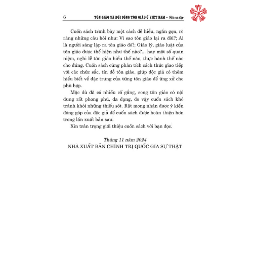 Để giúp bạn đọc hiểu rõ và đầy đủ hơn về các tôn giáo, đời sống tôn giáo ở Việt Nam, Nhà xuất bản Chính trị quốc gia Sự thật xuất bản cuốn sách Tôn giáo và đời sống tôn giáo ở Việt Nam - Hỏi và đáp của tác giả Nguyễn Thái Bình và Đỗ Thị Thanh Hương.