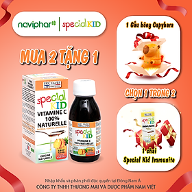 Mua tại TiktokSiro bổ sung Vitamin C tự nhiên TPBVSK Special Kid Vitamine C 100% Naturelle / Special Kid 100% Natural Vitamin C 125ml Tăng cường hấp thụ sắt, tăng sức đề kháng, chống nhiễm trùng, bảo vệ thành mạch máu [Nhập khẩu - Pháp] Special Kid là thương hiệu nhập khẩu nguyên hộp từ Pháp, đáp ứng hầu hết nhu cầu phòng và hỗ trợ điều trị các bệnh thường gặp của trẻ trong những năm tháng đầu đời. Special Kid Vitamine C 100% Naturelle được bào chế chuyên biệt dành cho trẻ em, mùi vị dễ chịu, chỉ cần sử dụng 1 lần/ngày. Tiết kiệm. Dễ nhớ Công dụng : Bổ sung Vitamin C cho cơ thể. Hỗ trợ bảo vệ thành mạch máu. Hỗ trợ tăng cường sức đề kháng. Đối tượng sử dụng : Trẻ có chế độ ăn thiếu Vitamin C Trẻ hay bị chảy máu chân răng Trẻ chảy máu cam do thiếu vitamin C. Trẻ có sức đề kháng kém Hướng dẫn sử dụng : Trẻ em dưới 24 tháng tuổi : Sử dụng theo hướng dẫn của Bác sỹ. Trẻ dưới 5 tuổi : Uống 10ml (1 thìa cà phê) mỗi ngày vào buổi sáng. Trẻ trên 5 tuổi : Uống 20ml (2 thìa cà phê) mỗi ngày vào buổi sáng. Lắc kỹ trước khi dùng. Có thể uống trực tiếp hoặc pha loãng với nước hay nước giải khát khác. Giá trên đã bao gồm thuế giá trị gia tăng theo luật định. Sản phẩm không phải là thuốc, không có tác dụng thay thế thuốc chữa bệnh. Thông tin sản phẩm : Đóng gói : Chai / Hộp Mùi hương : Vị ngọt Hương vị dứa Dung tích : Chai 125ml Xuất xứ : Pháp Thành phần : Thành phần chính trong 1 liều 20ml: Dịch chiết quả Rosa canina/ Tầm xuân ………… 7.000 mg Dịch chiết quả Ribes nigrum/ Lý chua ………… 7.000 mg Bột quả Malpighia punicifolia/ Sơ ri ………… 320 mg (Vitamin C ………… 80 mg) Nhập khẩu & phân phối : Công ty TNHH TM và DP Nam Việt