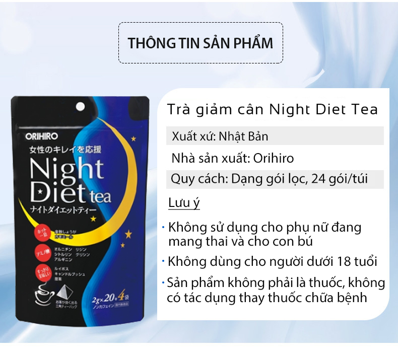 ✨Trà đốt mỡ và kiểm soát cân nặng Night Diet Tea Orihiro Nhật Bản thải độc cơ thể, cải thiện chất lượng giấc ngủ gói 24 túi lọc JN-OR-NI01