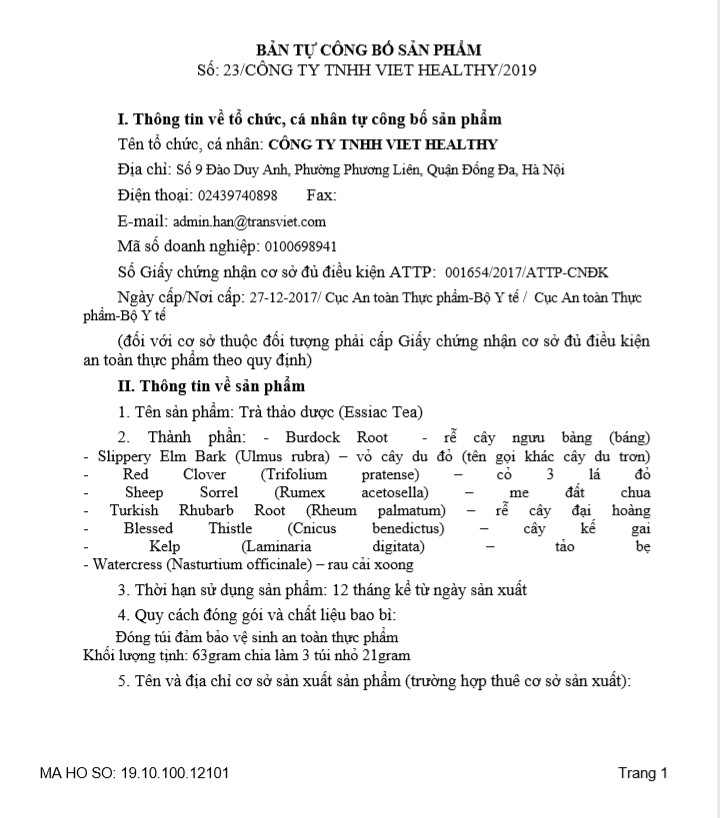 Essiac tea nhà VietHealthy vừa ra mắt đã nhanh chóng trở thành sản phẩm rất được quan tâm. Dù sản phẩm này đã quá quen thuộc trên các diễn đàn sức khỏe quốc tế nhưng ở Việt Nam, Essiac tea còn khá mới mẻ. Trong loạt bài viết này, VietHealthy xin trả lời các câu hỏi liên quan đến Essiac tea, mời mọi người theo dõi và tìm hiểu! ️ ESSIAC TEA LÀ GÌ?Essiac tea là một loại trà thảo dược được y tá người Canada – M. Caisse cung cấp công thức, Rene đã cống hiến cả đời chăm sóc sức khỏe cho mọi người bằng công thức Essiac tea. Phòng Khám Ung Thư Caisse của bà đã mở cửa từ năm 1935 đến năm 1941. Essiac tea rất nổi tiếng bởi khả năng khắc phục nhiều vấn đề sức khỏe mãn tính, đây cũng là một phương pháp thanh lọc cơ thể tuyệt vời. ️ NHỮNG LOẠI THẢO DƯỢC CÓ TRONG ESSIAC TEA? Essiac tea ban đầu được làm từ 4 thành phần: rễ ngưu bàng (burdock root) cây me đất chua (sheep sorrel) Slippery elm Rễ cây đại hoàng (rhubarb root) Ấn Độ hoặc Thổ Nhĩ Kì. Essiac Tea theo công thức cải tiến mà VietHealthy cung cấp còn có tên gọi là Flor Essence, cũng có các thành phần giống Essiac và thêm 4 thành phần: Rau cải xoong (watercress) cây kế (blessed thistle) Red clover Tảo bẹ (kelp). ️ ESSIAC HOẠT ĐỘNG NHƯ THẾ NÀO?