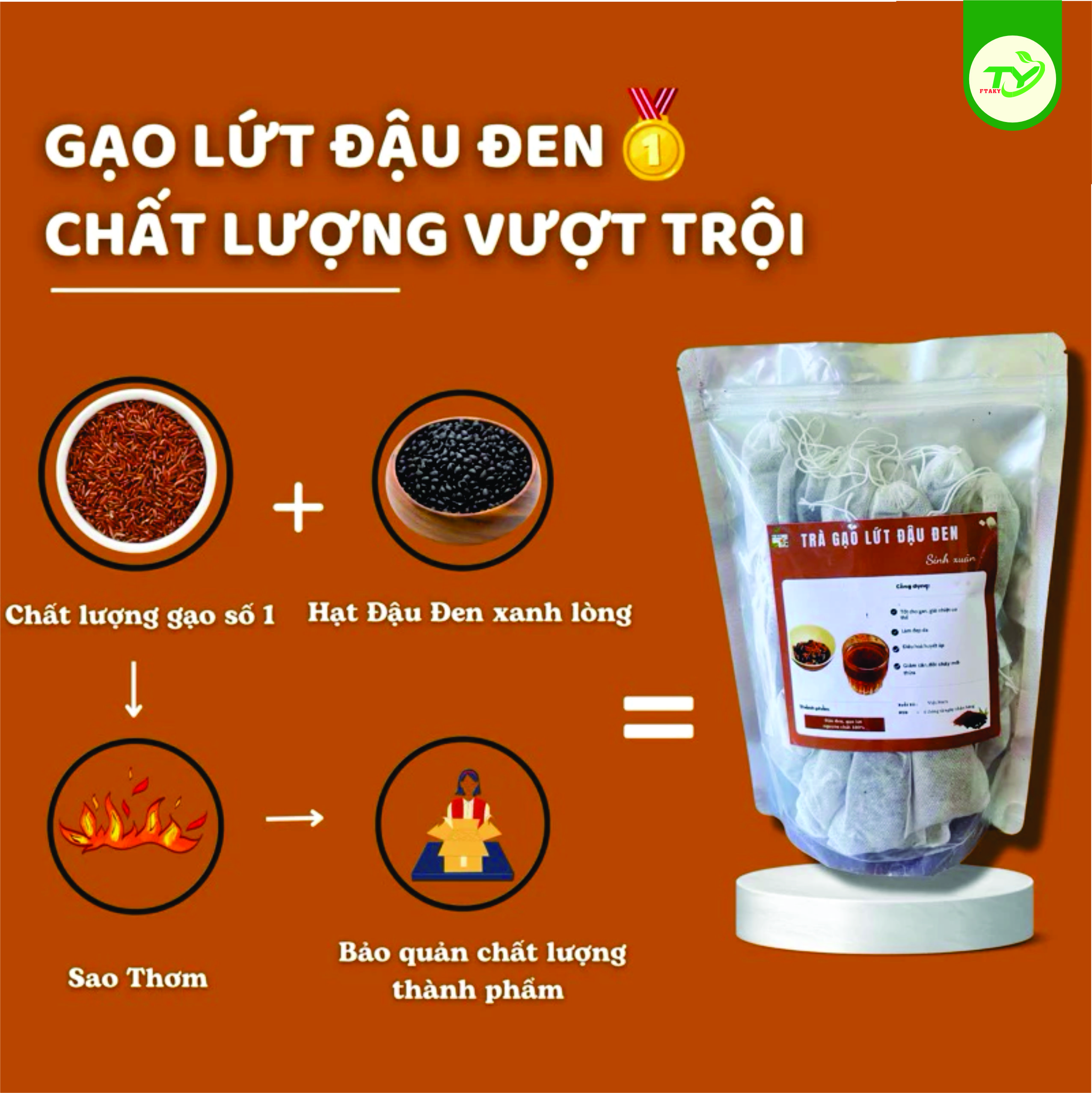 Thông Tin Sản Phẩm: Tên sản phẩm: Trà Gạo Lứt Đậu Đen Sao Thơm, 5 Vị, Hỗ Trợ Giảm Cân, Chống Lão Hoá, Tiểu Đường, Thải Độc Gan  Đóng gói: 40 túi lọc, 60 túi
