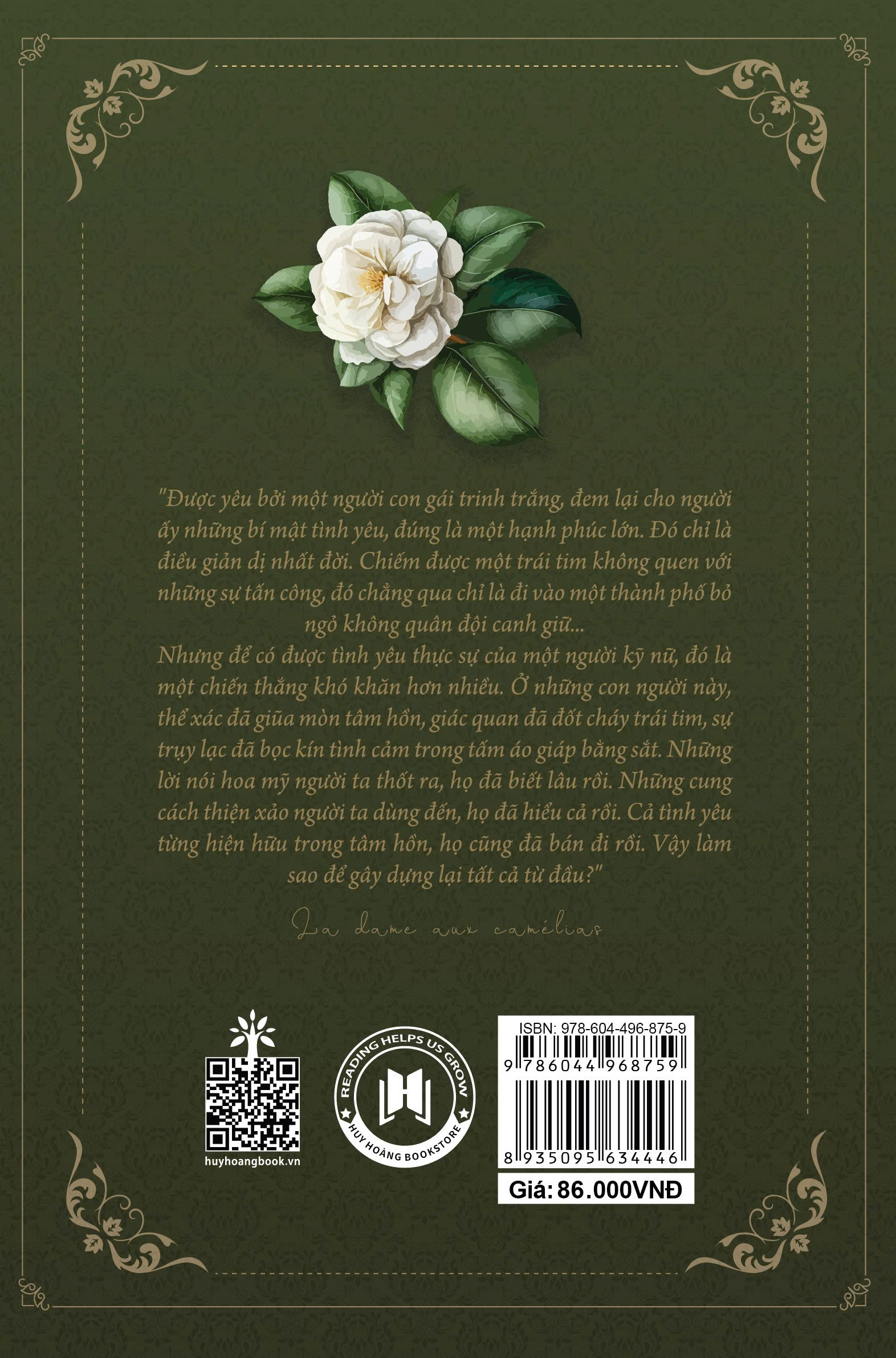 Truyện được kể qua lời của hai nhân vật nam là Armand và người kể chuyện đã tham dự buổi đấu giá tài sản tại chính căn nhà xa hoa sau khi Marguerite qua đời. Một số học giả cho rằng căn bệnh của Marguerite và nguyên nhân cái chết được công bố của người tình của tác giả, Marie Duplessis do "bệnh lao" chính là uyển ngữ của thế kỷ 19 cho căn bệnh giang mai.