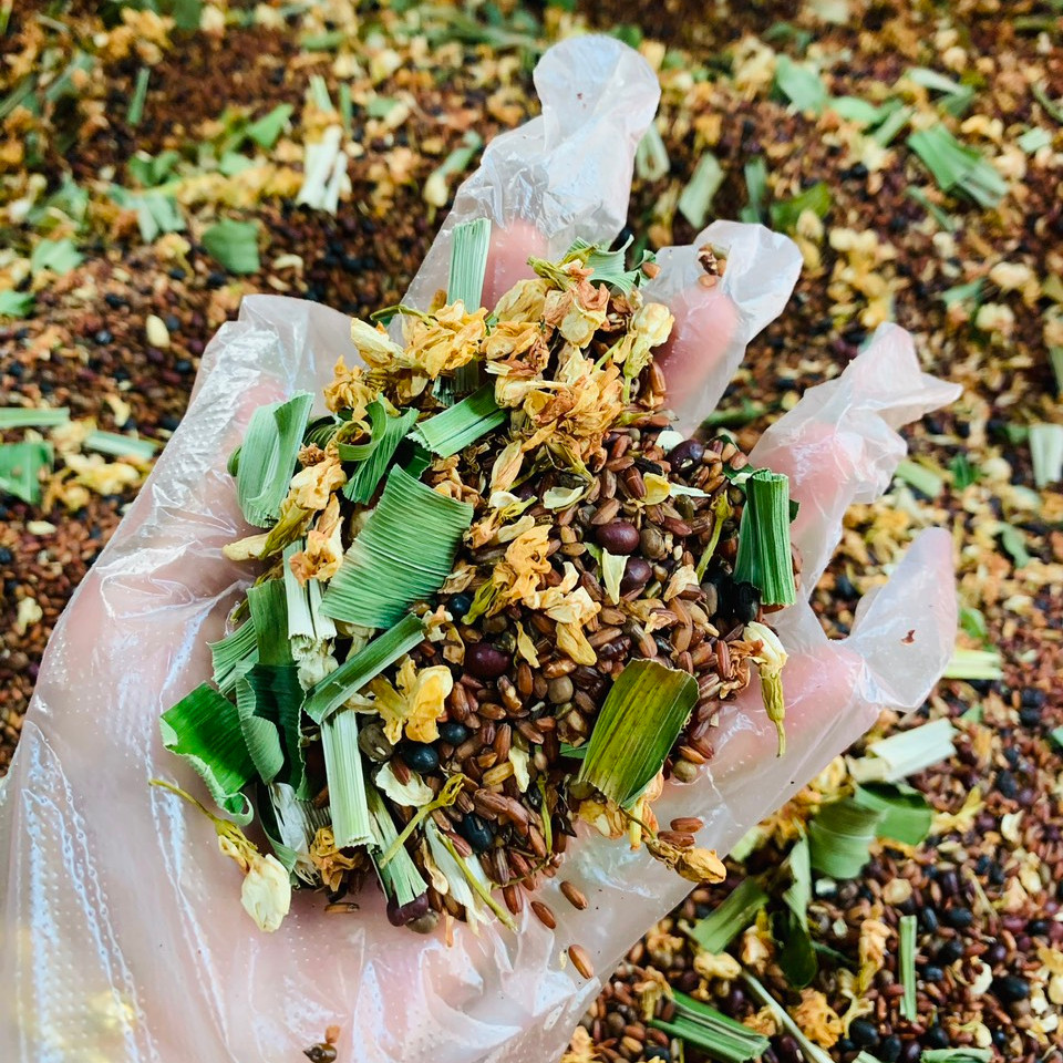 Trà Ngũ Cốc với thành phần gạo lứt huyết rồng ,đậu đen xanh lòng, đậu đỏ, đậu xanh, thảo quyết minh ,hoa hoè, hoa lài, lá dứa. Chất lượng 100% từ thảo mộc thiên nhiên.