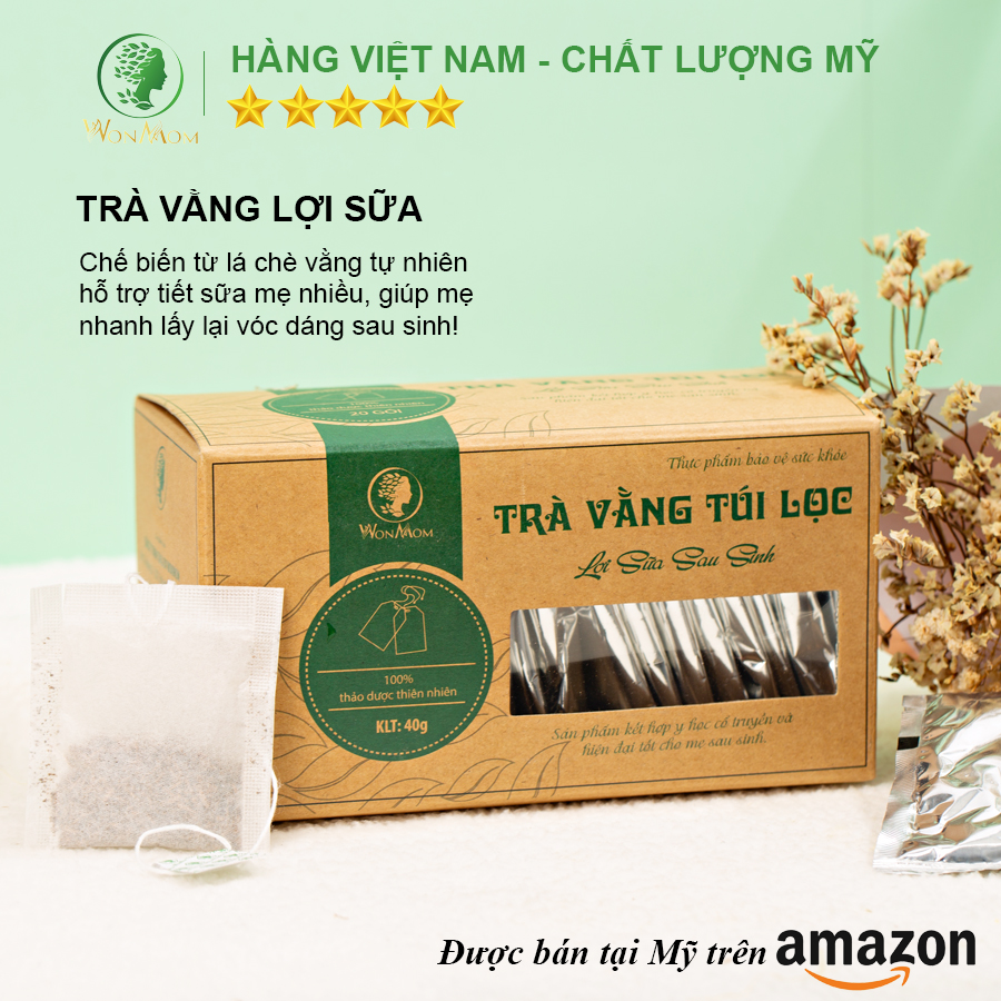 ✨Trà vằng túi lọc lợi sữa, nhanh lấy lại vóc dáng sau sinh Wonmom 40gr ( 20 Túi/Hộp )