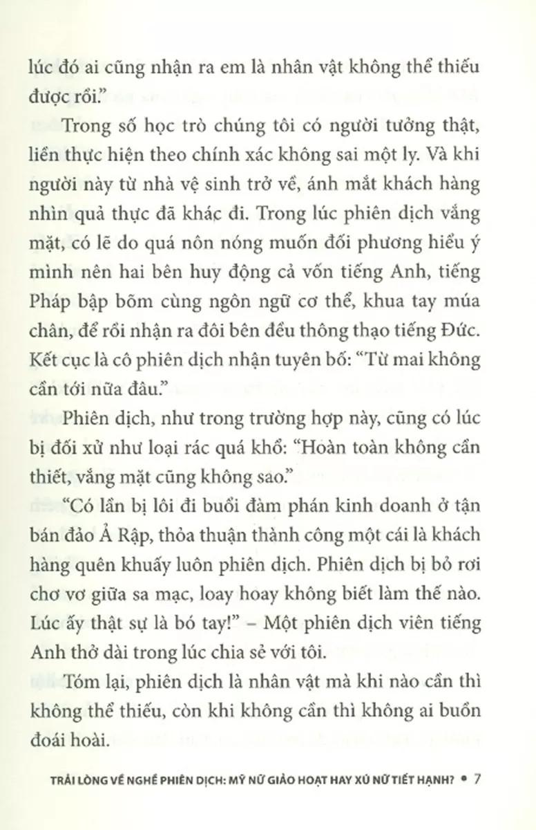 Được Ōe Kenzaburō – nhà văn từng đoạt giải Nobel ca ngợi “là một câu chuyện về chặng đường chiến đấu và hoà giải của ngôn từ”, Inoue Hisashi – tiểu thuyết gia, nhà soạn kịch hàng đầu Nhật Bản đánh giá “là một nghiên cứu xoáy sâu vào bản chất của chính ngôn ngữ”, Trải lòng về nghề phiên dịch: Mỹ nữ giảo hoạt hay xú nữ tiết hạnh? ghi lại các trải nghiệm giao thoa văn hoá, những nỗi gian nan và chuyện hậu trường phiên dịch đồng thời (simultaneous interpreting) bằng ngòi bút độc đáo, sắc sảo, hài hước của Yonehara Mari.