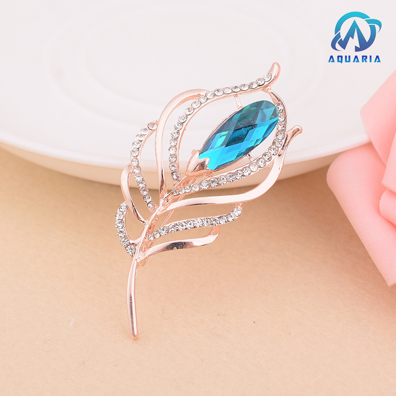 Trâm Cài Áo Nữ Quà Tặng Lông Vũ Đính Đá Saphia Xanh Trang Nhã Sang Trọng (Kèm Hộp)