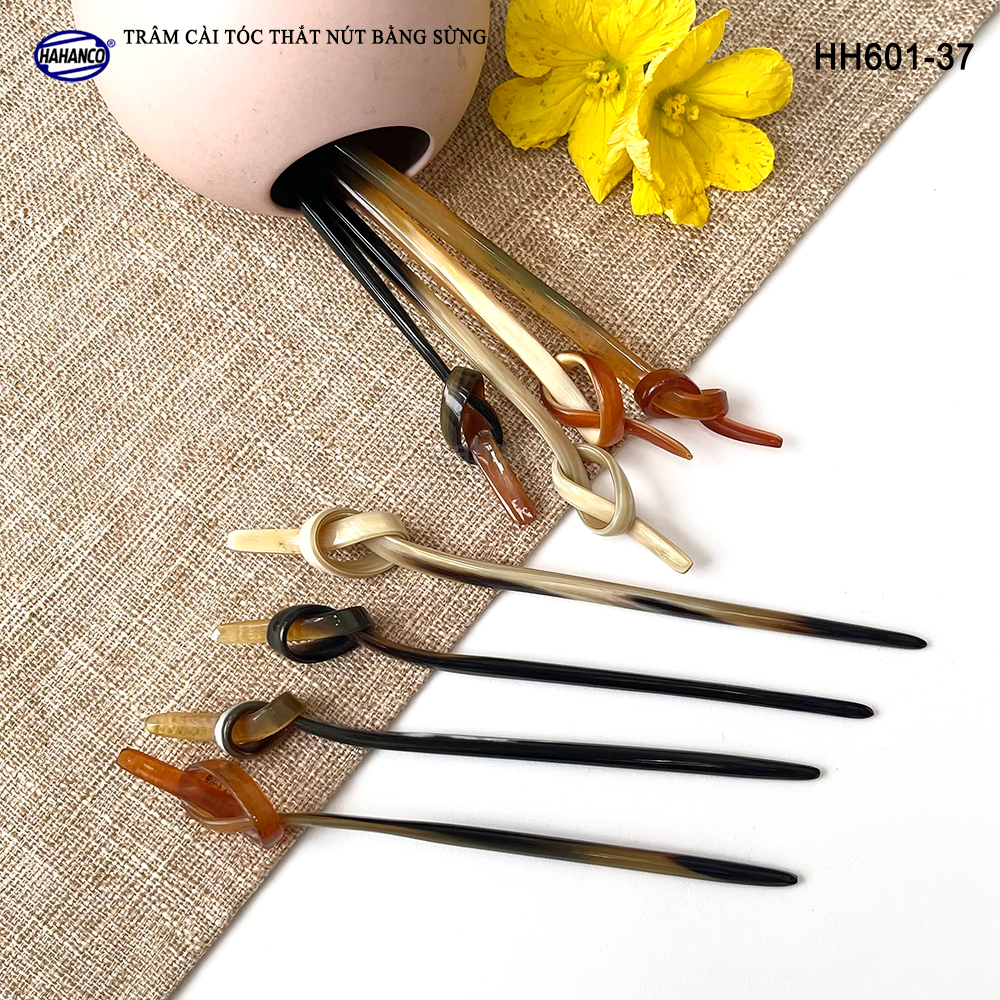 - Trâm sừng được làm hoàn toàn thủ công bằng sừng, các đường nét khía tỉ mỉ chi tiết, mỗi chiếc 1 kiểu dáng khác nhau. Mô tả sản phẩm: Trâm sừng - Mã Số: