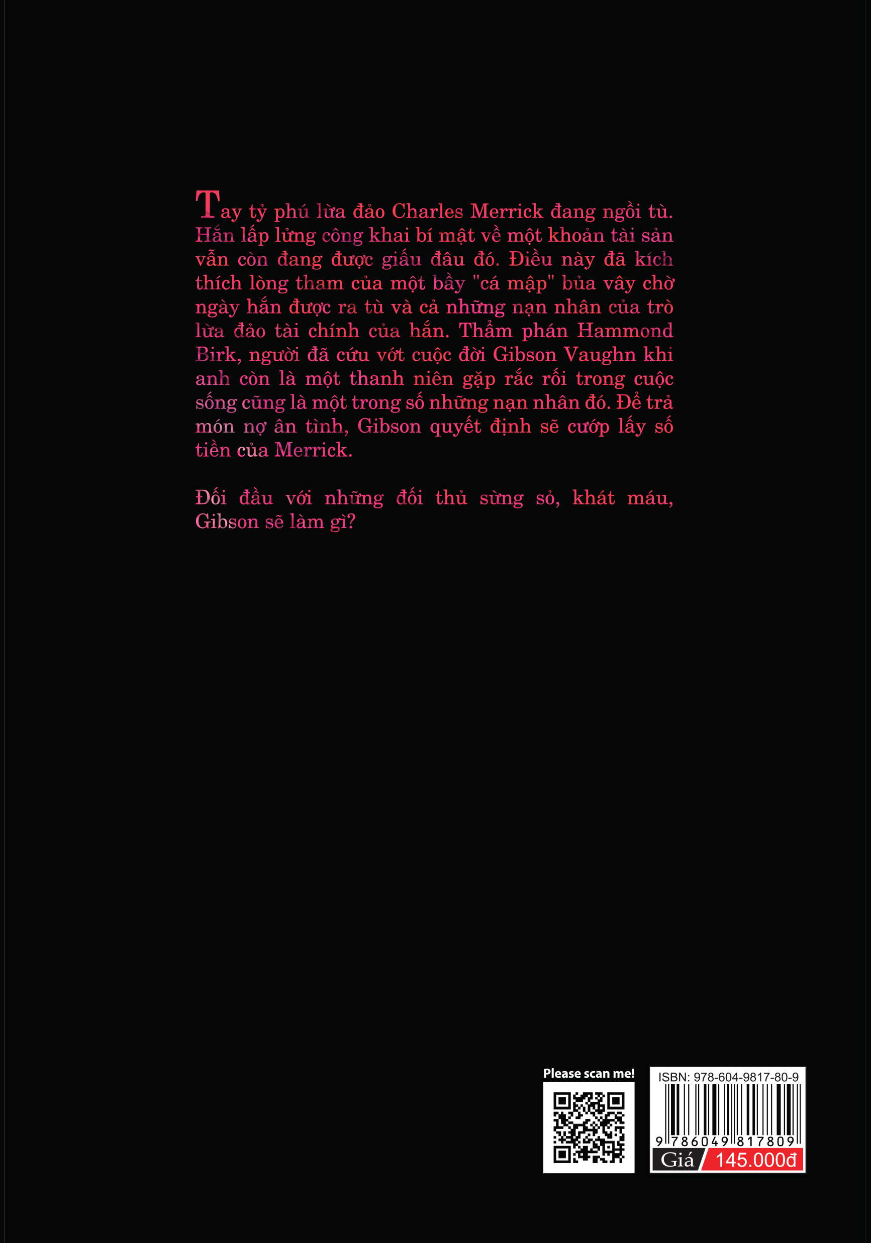 Tay tỷ phú lừa đảo Charles Merick đang ngồi tù. Hắn lấp lửng công khai bí mật về một tài sản vẫn còn đang được giấu đâu đó. Điều này đã kích thích lòng tham của một bầy “cá mập” bủa vây chờ ngày hắn được ra tù và cả những nạn nhân của trò lừa đảo tài chính của hắn. Thẩm phán Hammond Birk, người đã cứu vớt cuộc đời Gibson Vaughn khi anh còn là một thanh niên gặp rắc rối trong cuộc sống cũng là một trong số những nạn nhân đó. Để trả món nợ ân tình, Gibson quyết định sẽ cướp lấy số tiền của Merrick. Đối đầu với những đối thủ sừng sỏ, khát máu, Gibson sẽ làm gì?