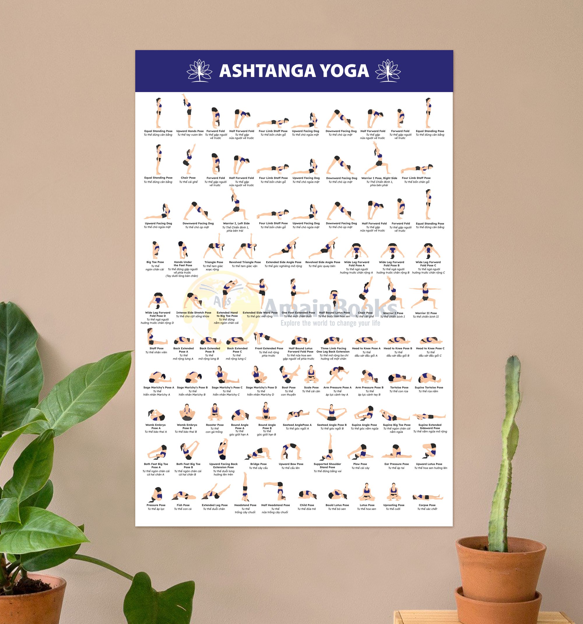 Khám phá sự hòa quyện giữa nghệ thuật và thực hành yoga với sản phẩm độc đáo này, minh họa cho các động tác cơ bản và nâng cao trong Ashtanga Yoga.