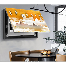 Tranh đồng hồ treo tường tráng gương trừu tượng hươu vàng - Kích thước của tranh : Kích thước : 30x60cm 40x80cm 50x100cm 60x120cm - Chất liệu : Mặt mica sáng bóng (không phải kính)