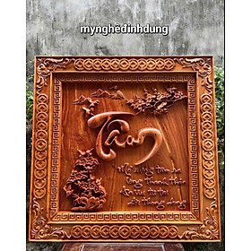 _ Tranh chữ phúc được làm bằng chất liệu gỗ gõ tự nhiên 100% _ Kt mặt vuông 61×61×4cm _ Tranh được khắc nổi tỉ mỉ ,tinh xảo kỳ công .Từ những người thợ giàu