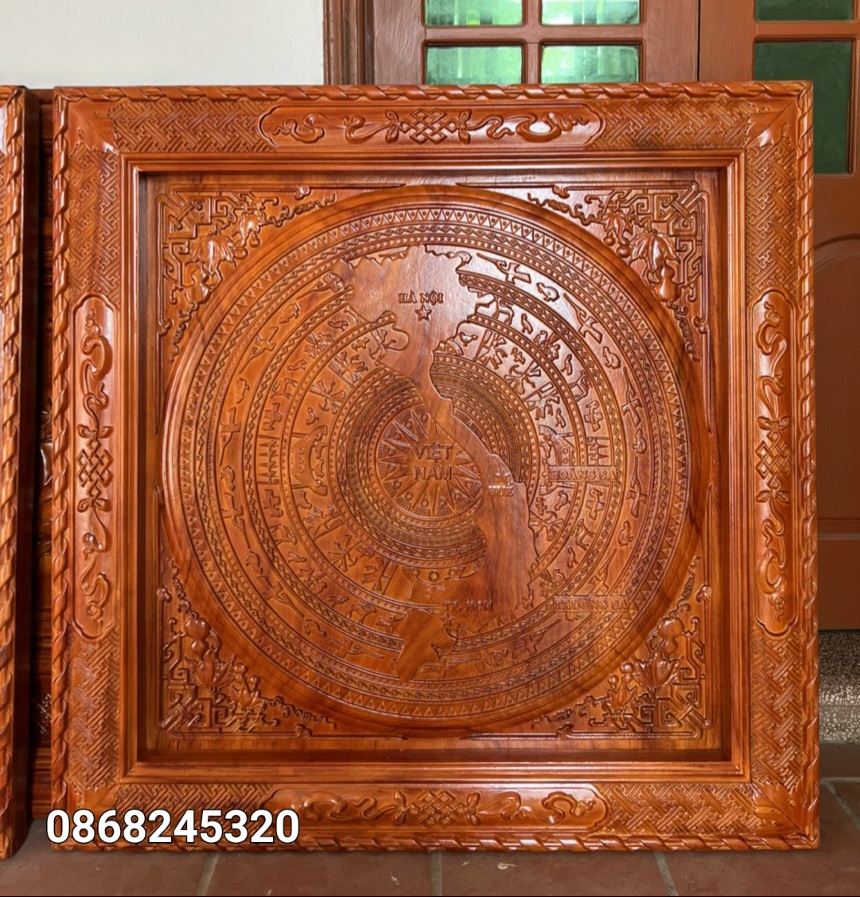 Mua tại Tiktok_ Tranh điêu khắc trống đồng đông sơn và giải hình chữ s bản đồ Việt Nam, được làm bằng bằng chất liệu gỗ hương đỏ tự nhiên 100%