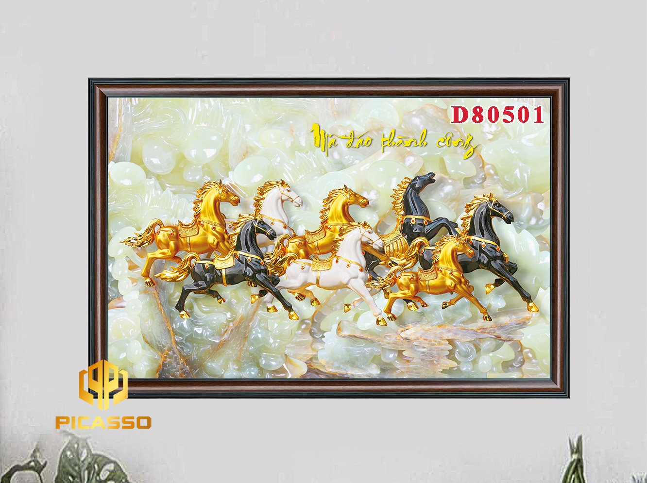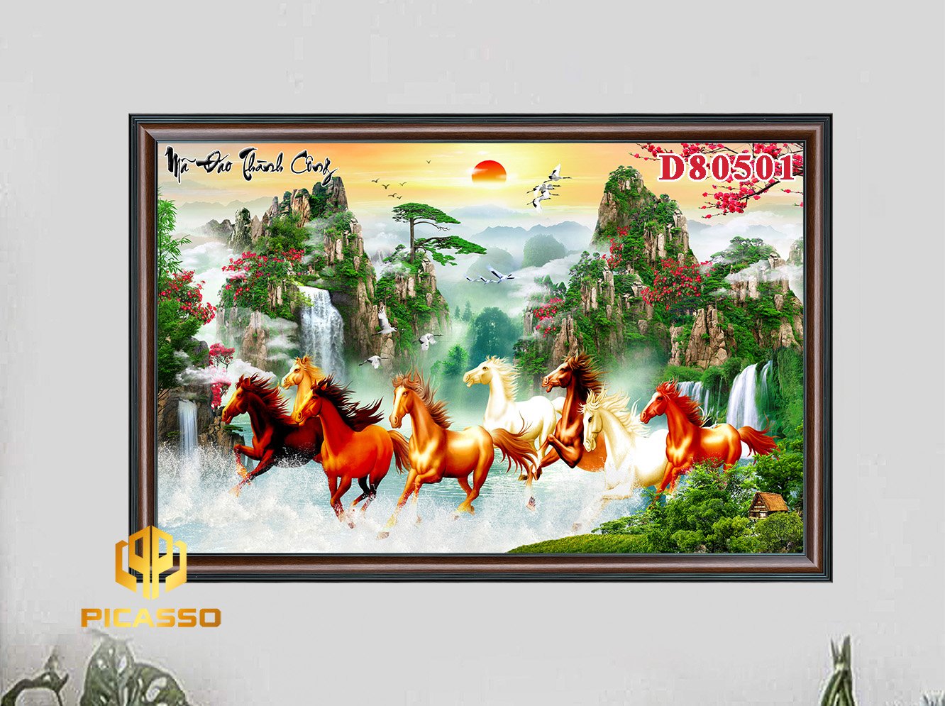 Tranh Bát Mã truy phong mạ vàng (Tranh Mã Đáo Thành Công) mang nhiều ý nghĩa phong thủy tốt lành. Là biểu tượng của Đoàn Kết - Thịnh Vượng - Thành Công. Đây được xem là