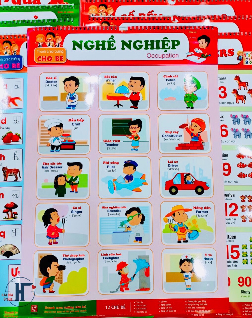 TÊN SẢN PHẨM: Bộ Tranh Treo Tường Song Ngữ (Song Ngữ) 12 CHỦ ĐỀ Cho Bé Kích thước: 40x60cm Giấy cán bóng 2 mặt Bộ Tranh Treo Tường Song Ngữ là công cụ