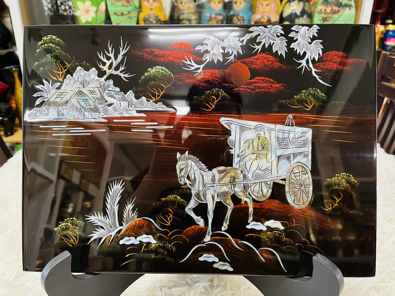 Kích thước 40x60cm Chất Liệu gỗ MDF phủ Melamin có độ bền cao Tranh sơn mài cẩn ốc là tranh nghệ thuật thủ công truyền thống của Việt Nam khác biệt hẳn so với các