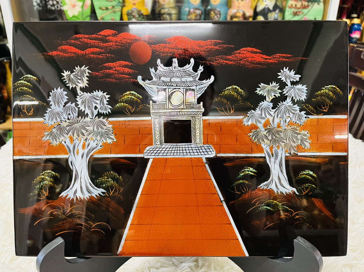 Tranh sơn mài khảm trai, ốc Khuê Văn Các - Chùa Một Cột Hà Nội Chất liêu,ván gỗ chuyên dụng để làm tranh sơn maì, khảm trai, ốc bền đẹp. Khung tranh compposite nhe chống