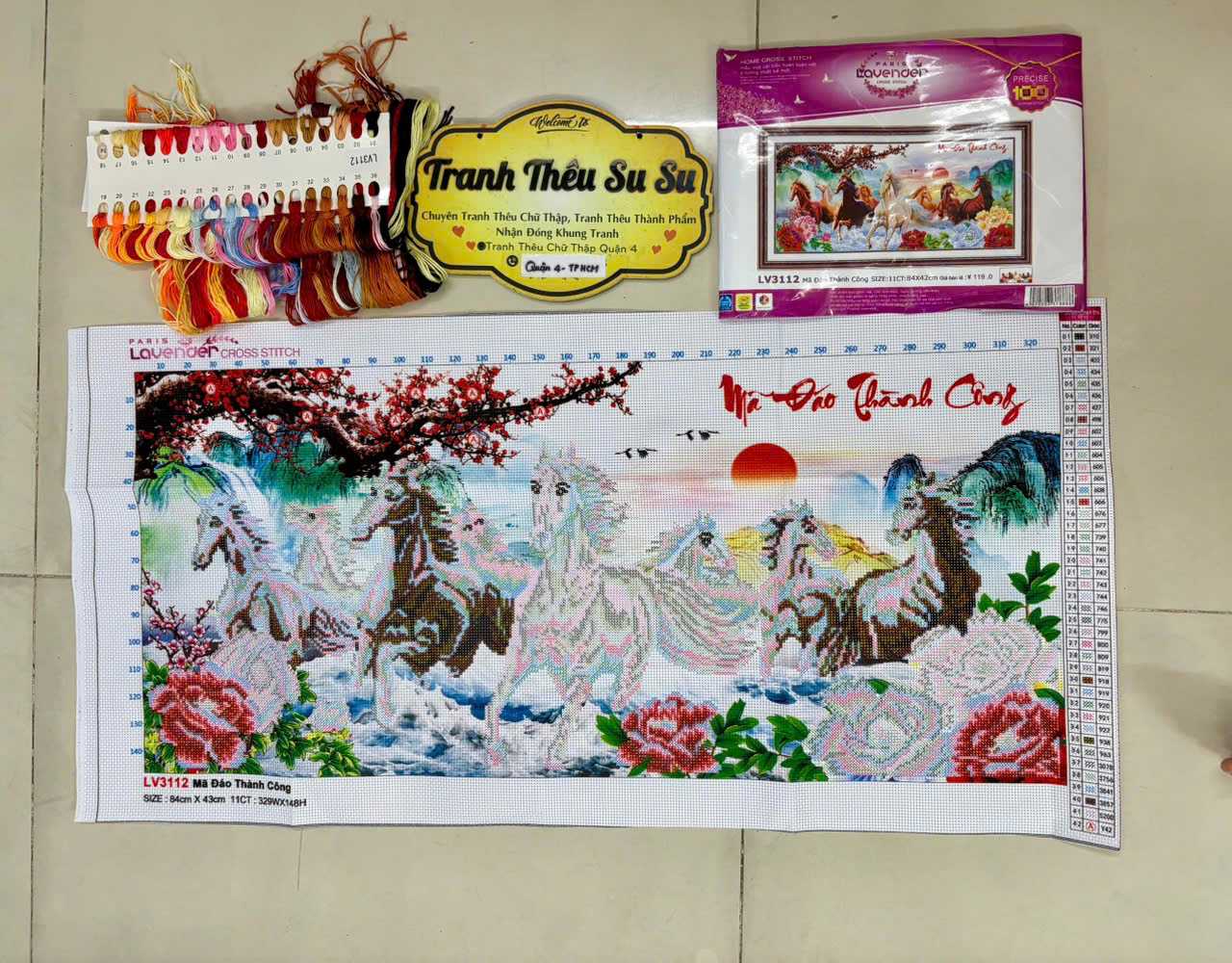 Sản phẩm này vải tốt, chỉ đẹp, phôi in rõ ràng, ký hiệu không nhầm lẫn. Thể loại: Tranh thêu chữ thập - sản phẩm này tranh chưa thêu. Kích thước: 84 x 43 cm