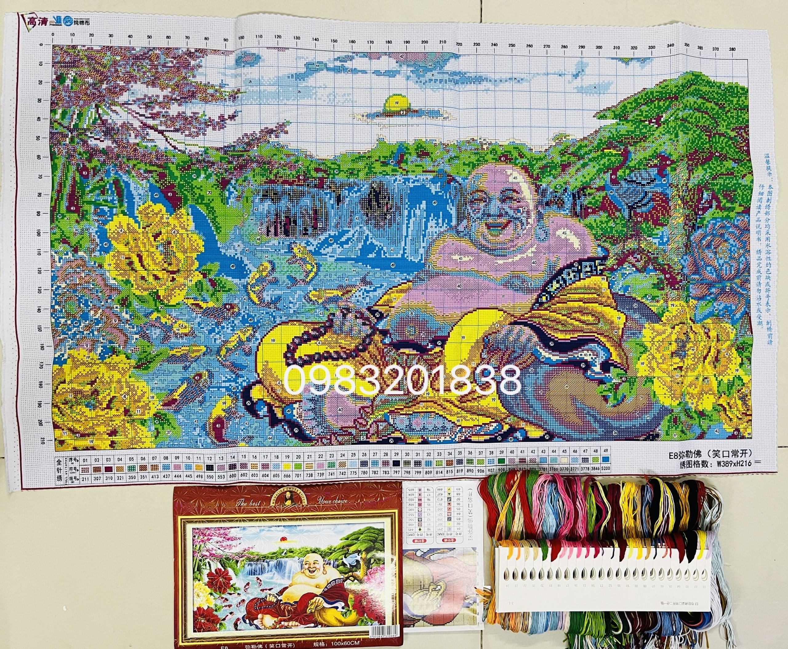 Tên tranh: Tranh thêu chữ thập Phật di lặc E8