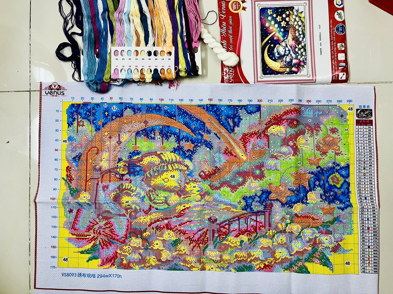 Thể loại: Tranh thêu chữ thập - sản phẩm này là tranh chưa thêu. Sản phẩm này là tranh của hãng Venus rất đẹp và bền màu. Vị trí khách cần thêu trên tranh: thêu