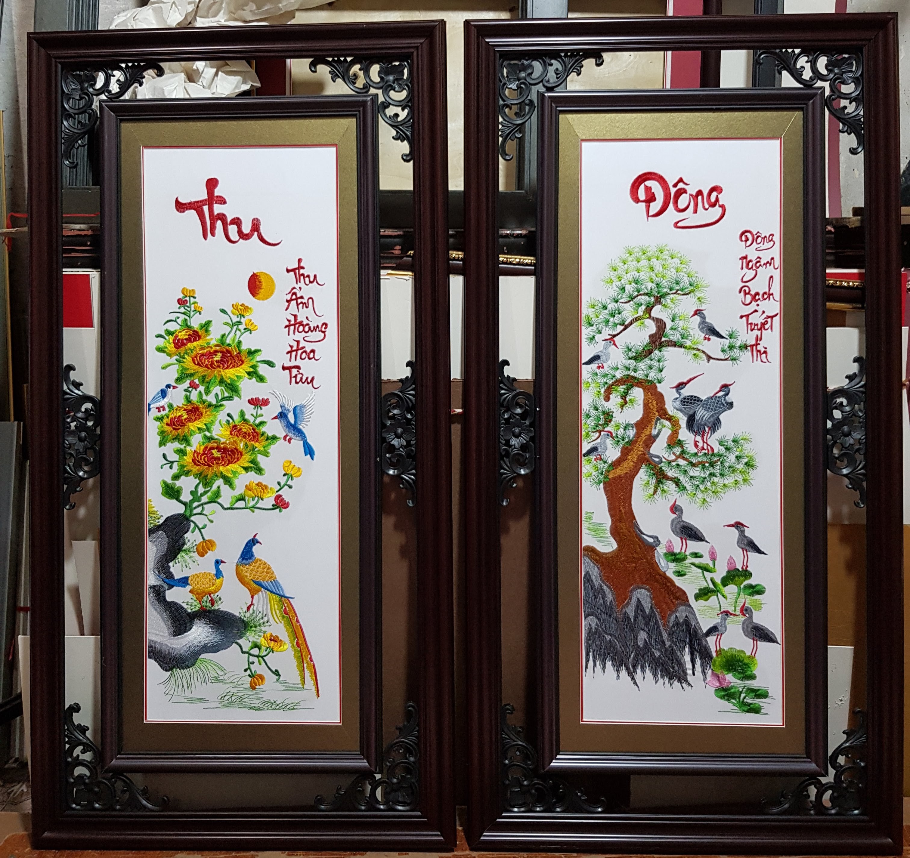 Tranh thêu tứ quý Tùng Cúc Trúc Mai đẹp nhất.