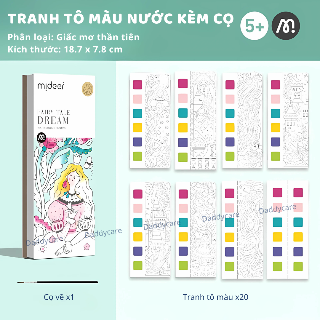 Mua tại TiktokCHÀO MỪNG BẠN ĐẾN VỚI DADDYCARE HÀNG SẴN SHIP HỎA TỐC, BẢO HÀNH CHÍNH HÃNG ————————————— Tranh Tô Màu Nước Kèm Cọ Mideer Watercolour Painting cho bé Bộ tranh tô màu nước mang đến trải nghiệm vẽ thú vị cho bé với hơn vô vàn cảnh truyện khác nhau. Sản phẩm dễ sử dụng với bút vẽ an toàn, giúp bé sáng tạo và khám phá thế giới nghệ thuật trong mơ! 9 Lý do ba mẹ nên chọn Tranh Tô Màu Nước Kèm Cọ Mideer Watercolour Painting cho bé