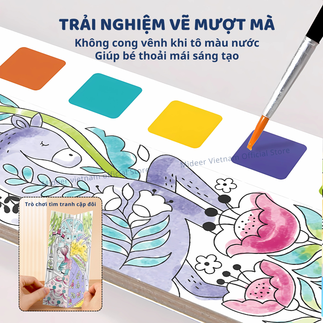 CHÀO MỪNG BẠN ĐẾN VỚI MIDEER VIETNAM HÀNG SẴN SHIP HỎA TỐC, BẢO HÀNH CHÍNH HÃNG ————————————— Tranh Tô Màu Nước Kèm Cọ Mideer Watercolour Painting cho bé Bộ tranh tô màu nước mang đến