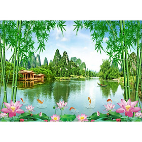 Tranh 3d phòng khách cảnh sơn thuỷ hữu tình đẹp