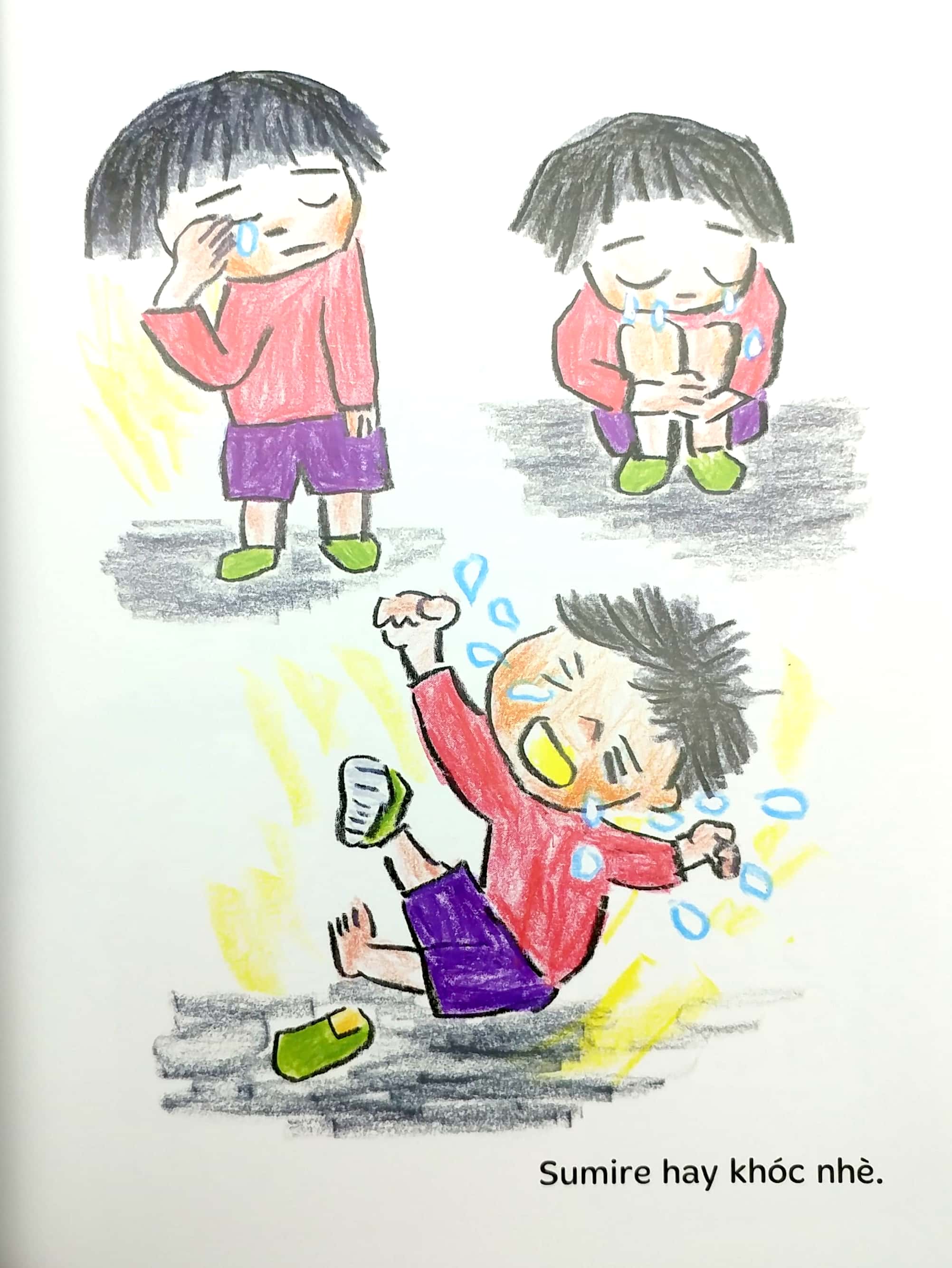 Sumire là một bạn nhỏ hay khóc nhè. Khi buồn, khi vui, khi cáu giận,ũng làm bạn khóc nhè. Đến mẹ của Sumirre cũng phải thắc mắc sao mà Sumire khóc nhiều như thế. Nhưng mà Sumire khóc là có lý do đó ạ. Và lý do đó là